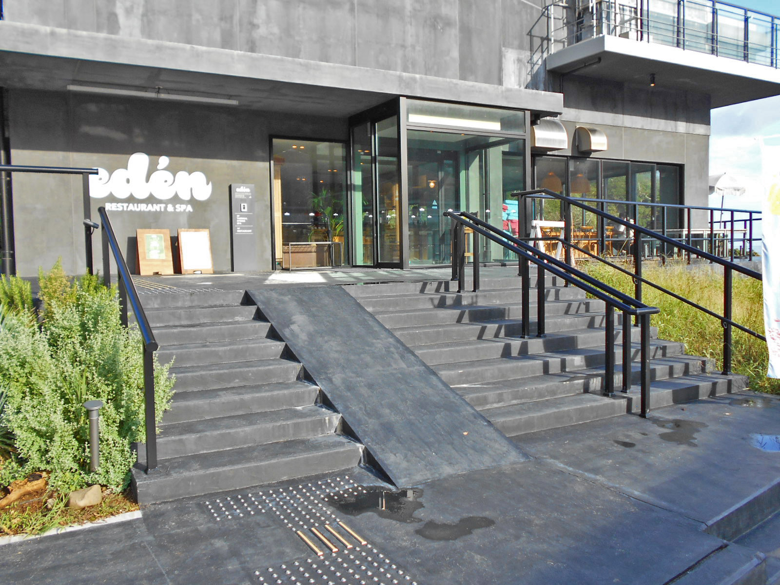 建物の出入口にスロープがある傾斜は1/12以下である出入口の幅:80cm以上90cm未満建物の出入口にブザーがある自動ドアがある