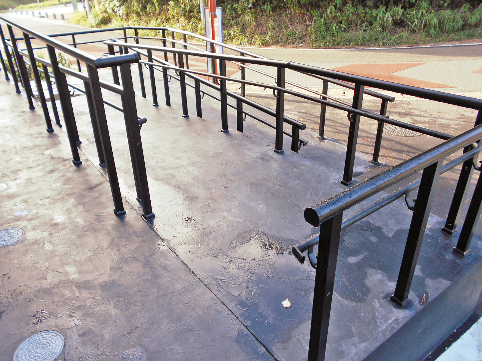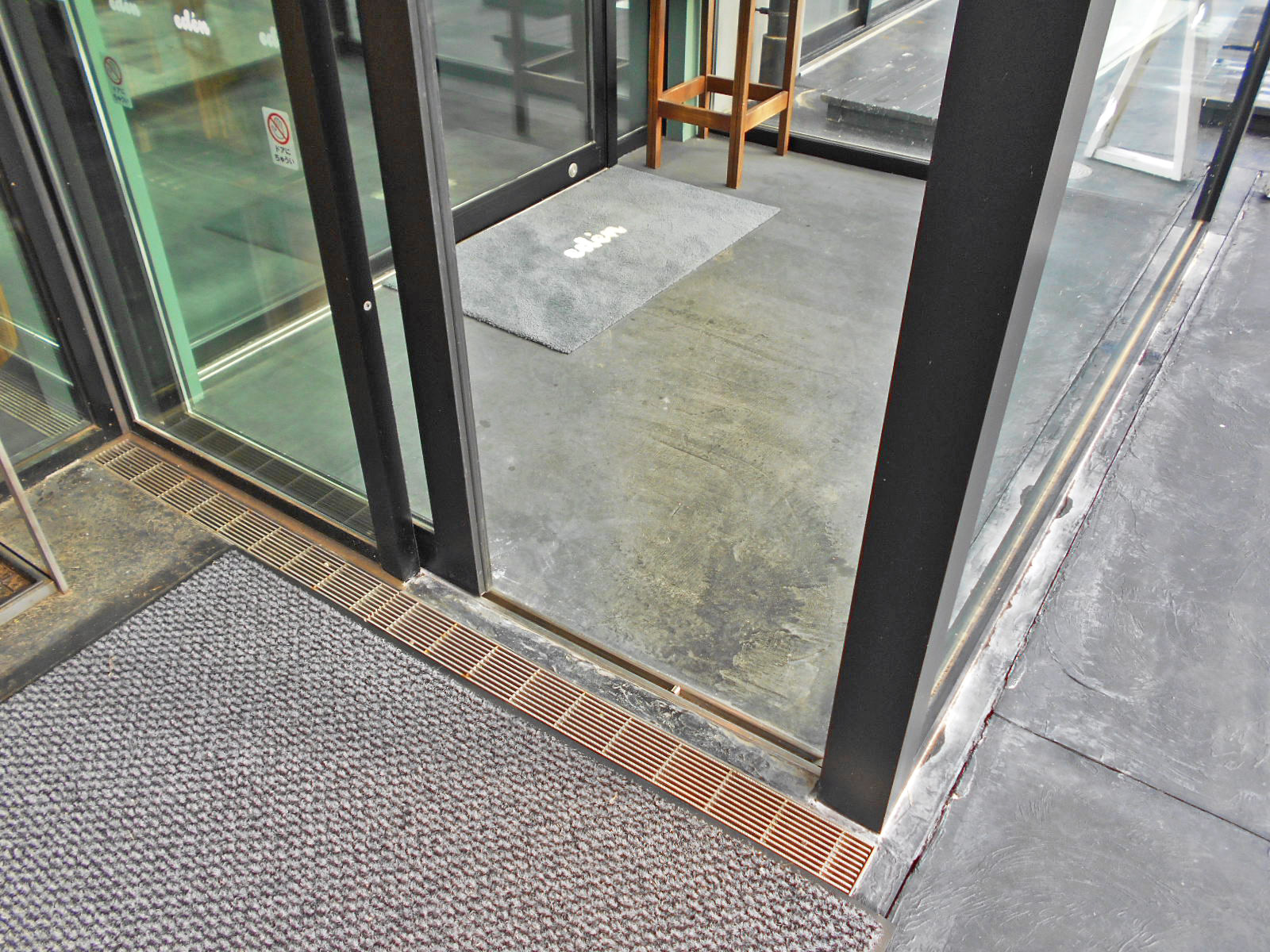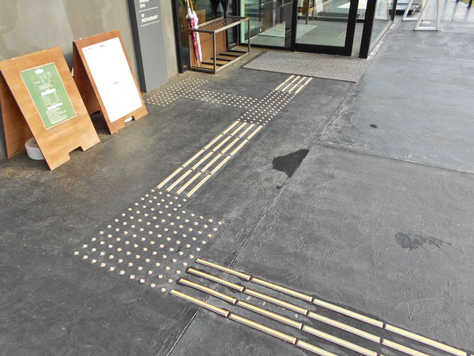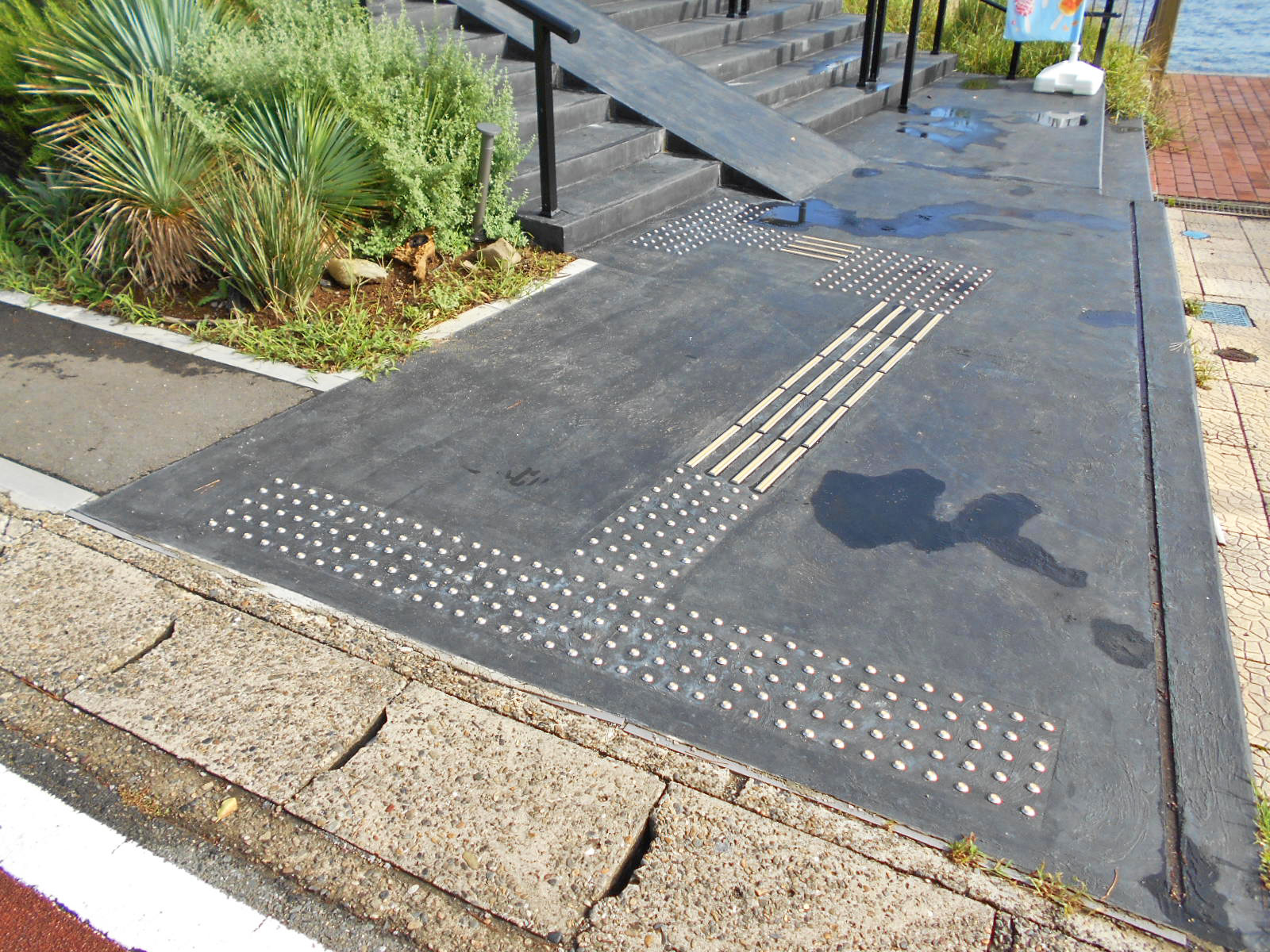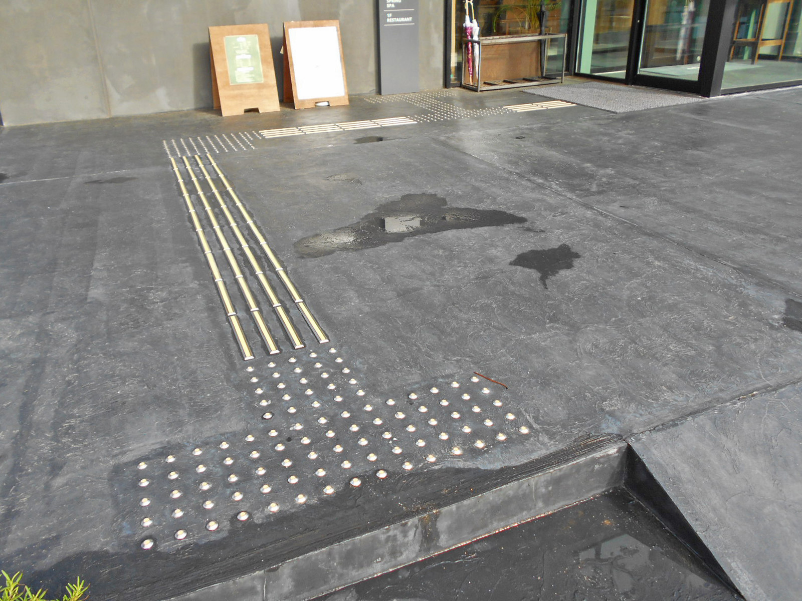 歩道から出入口までに視覚障害者誘導用ブロックがある