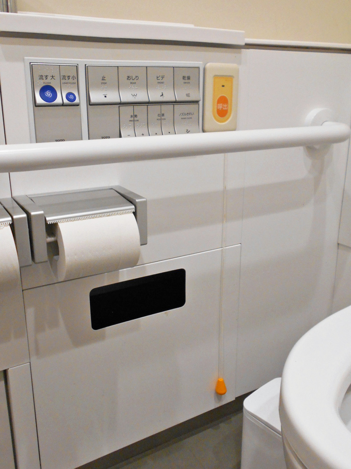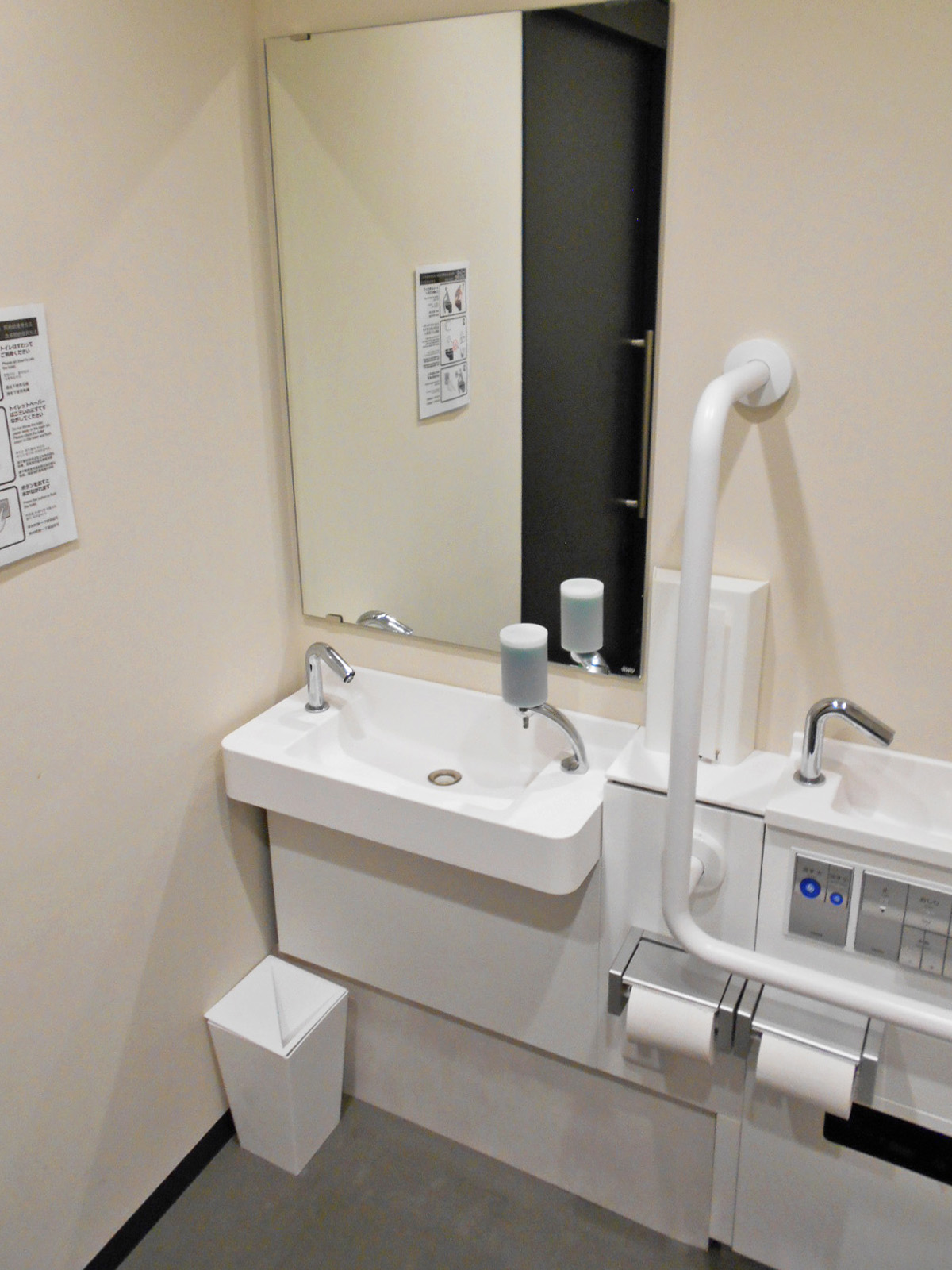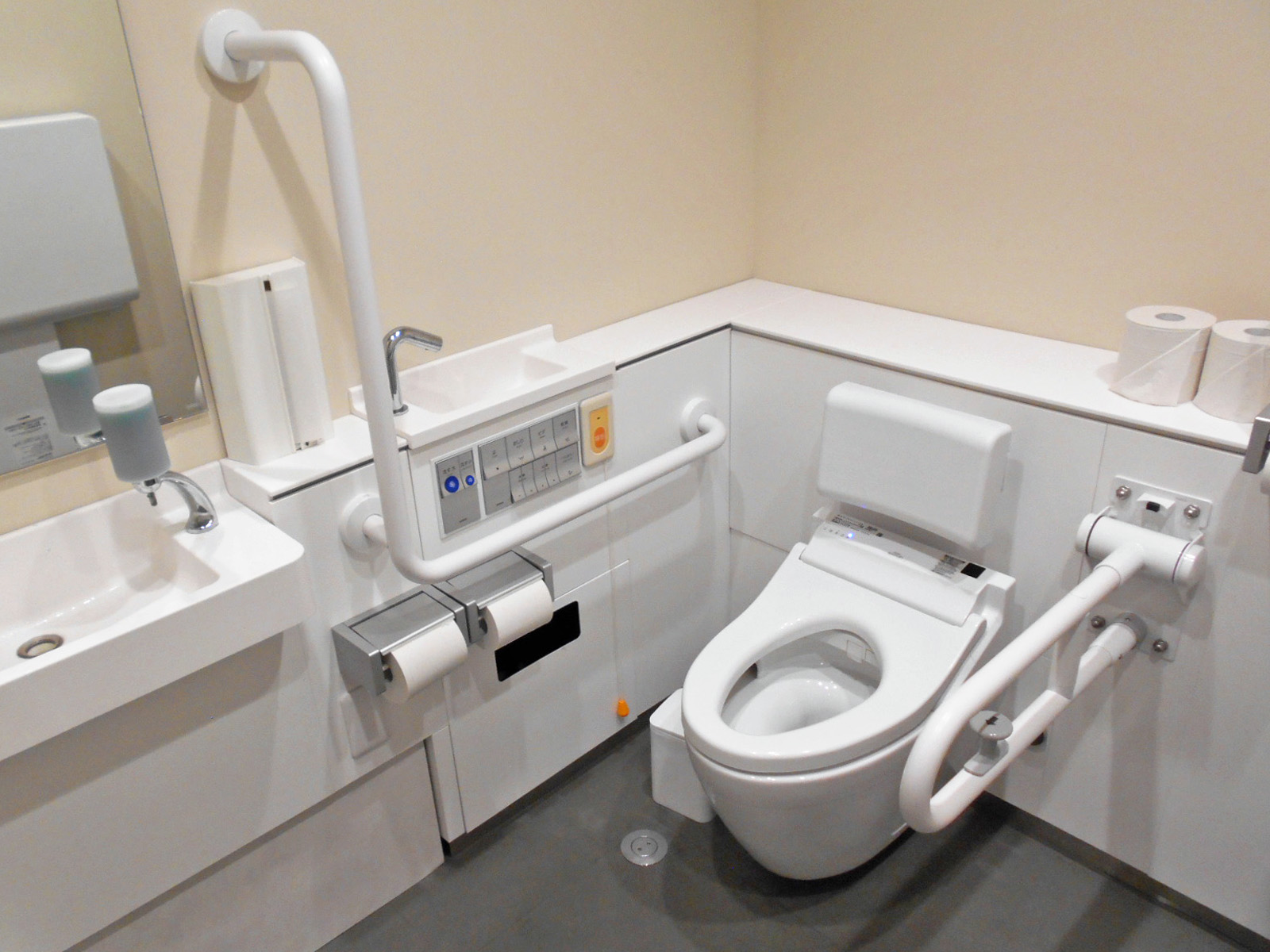 トイレがあるトイレ内の段差がない洋式便器がある男女共用バリアフリートイレがあるオストメイトがあるベビーベッドがある出入口の幅:80cm以上右手に壁がある右手すりが固定である左手すりが可動である非常ベルがある非常ベルが便座から手が届く範囲にある