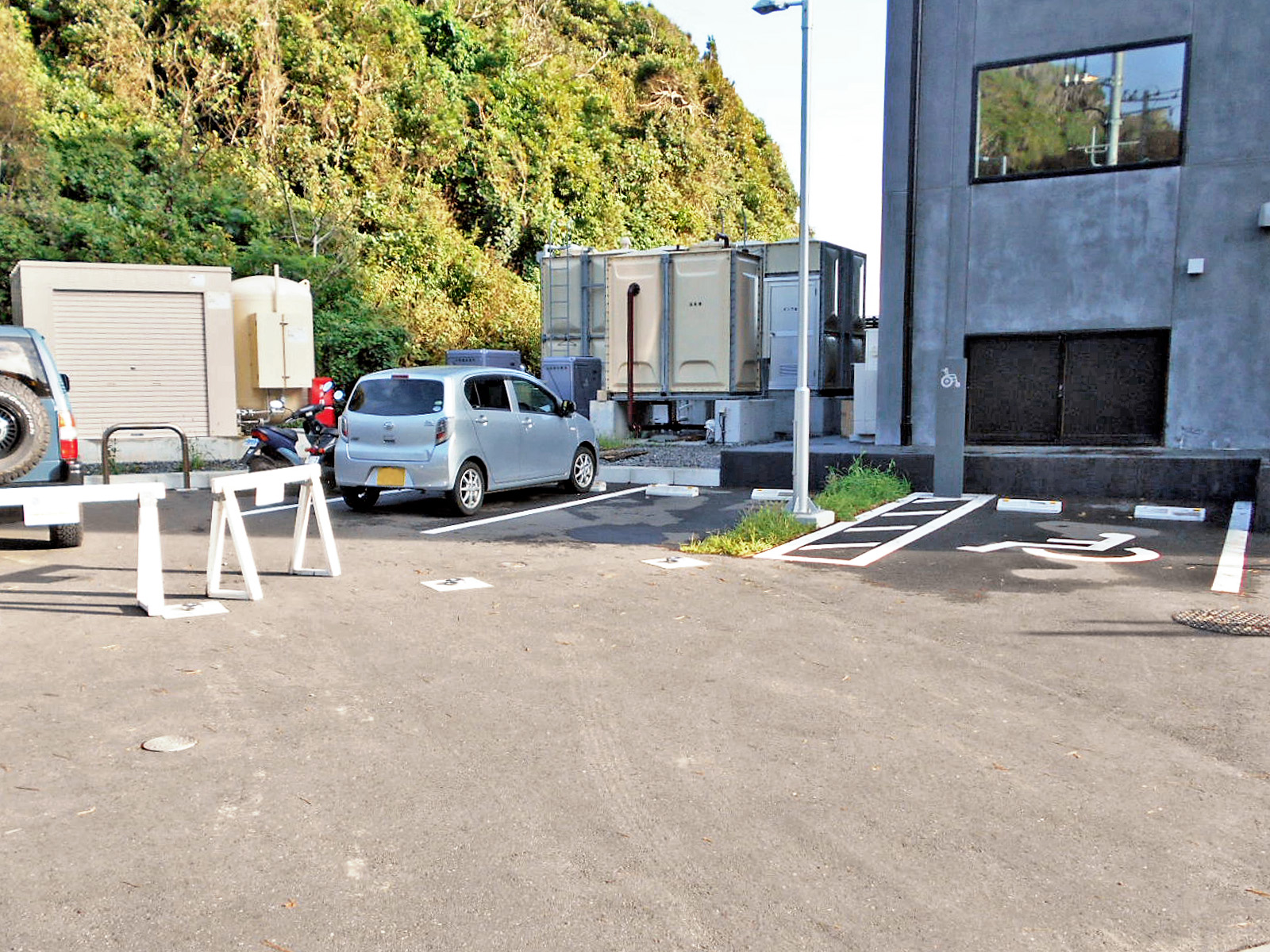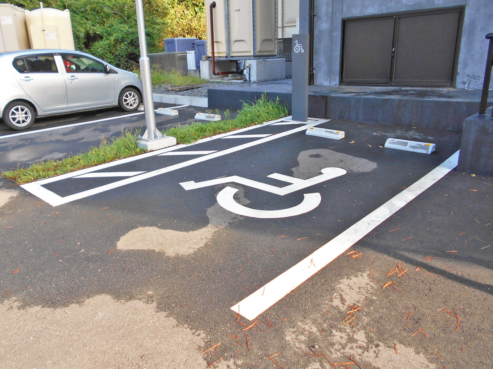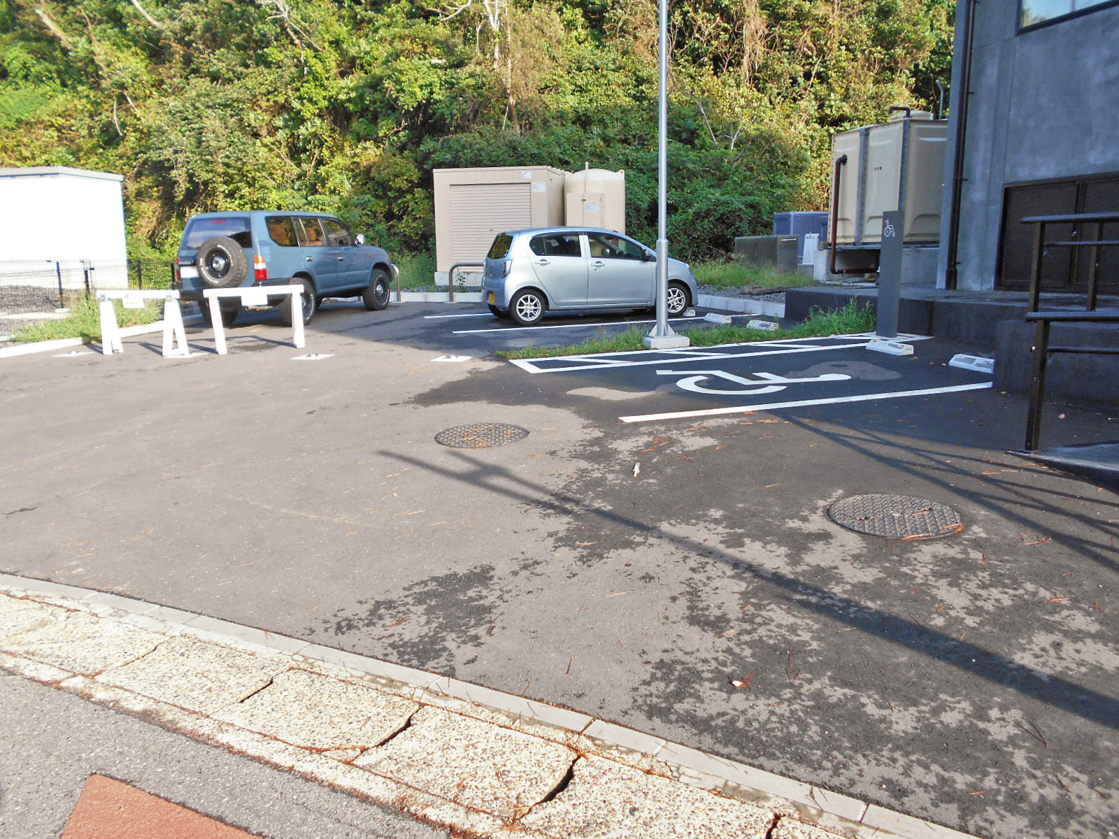 一般駐車場がある障害者等用駐車スペースがある障害者等用駐車スペースの案内表示がある