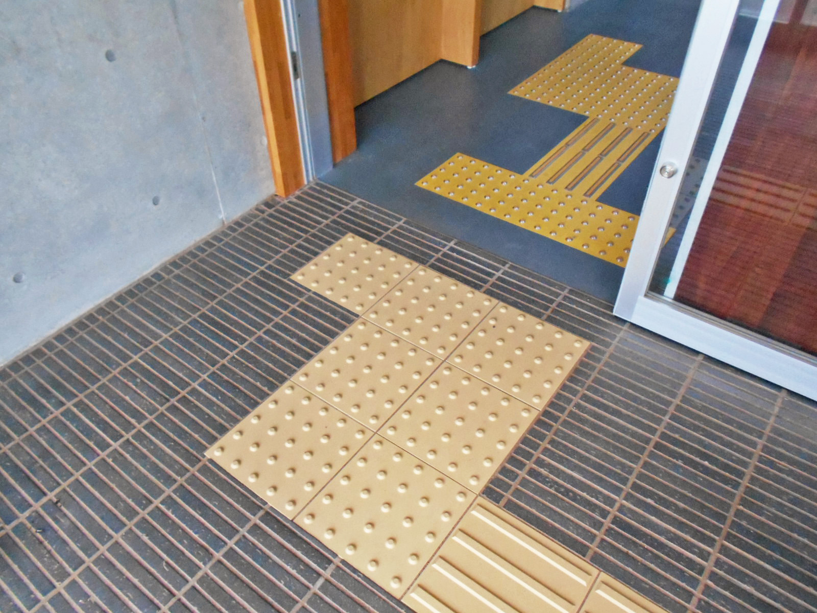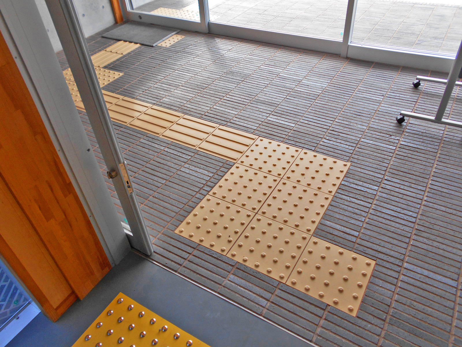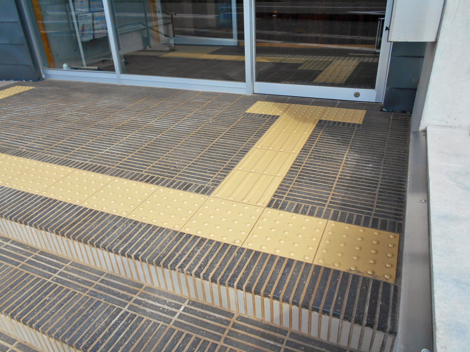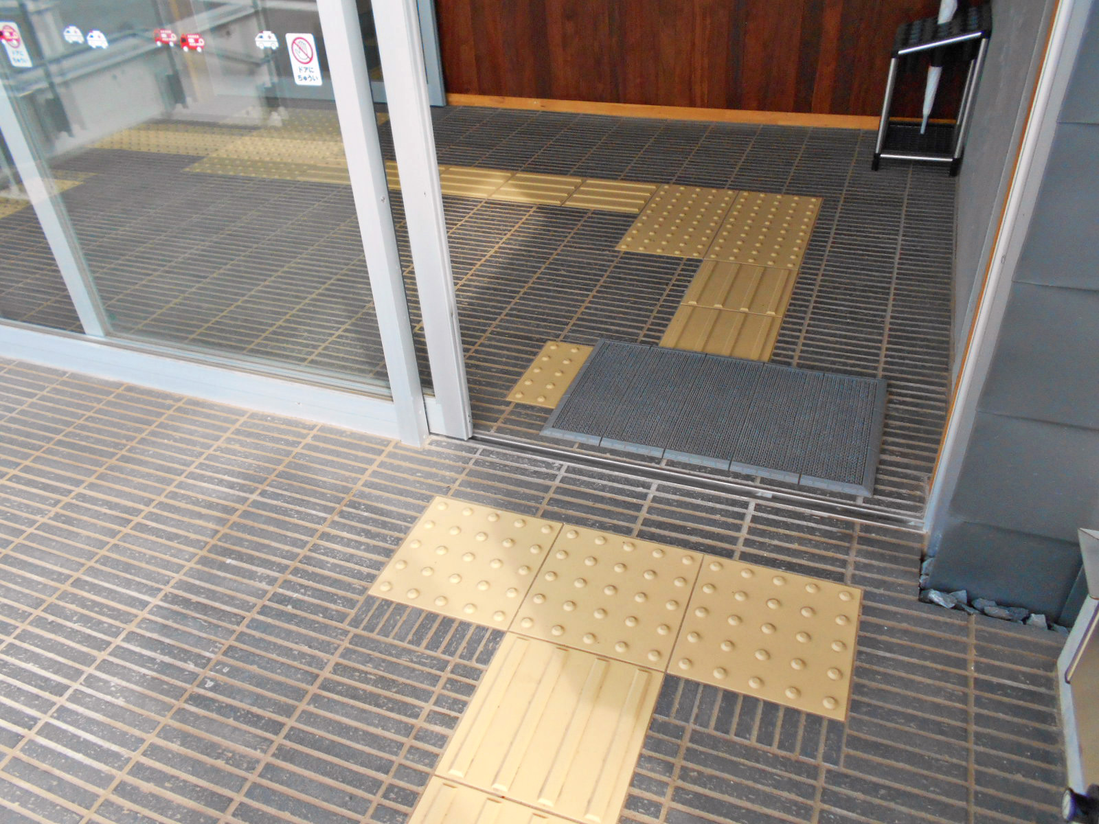 歩道から出入口までに視覚障害者誘導用ブロックがある