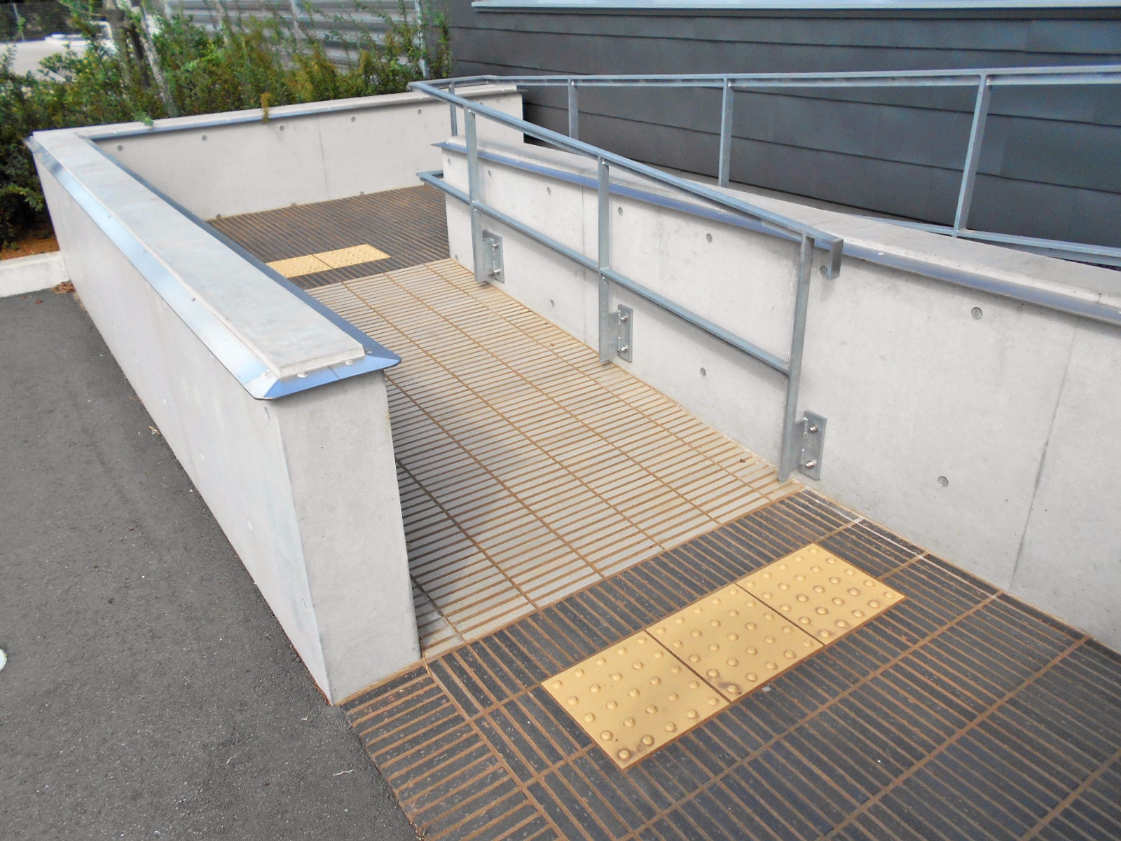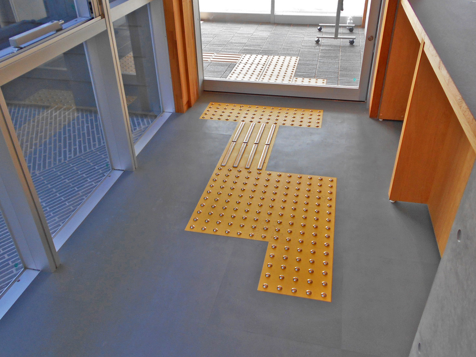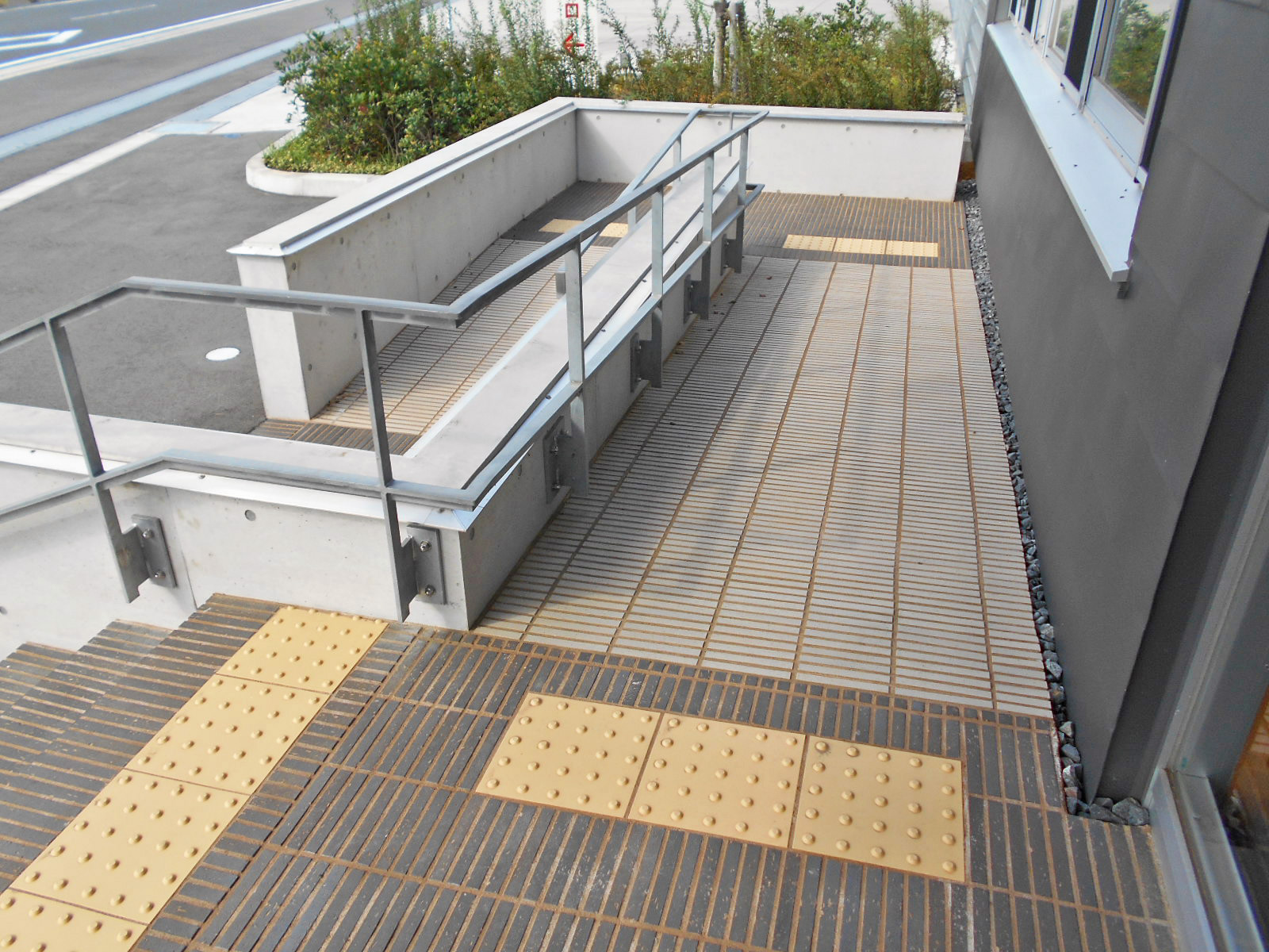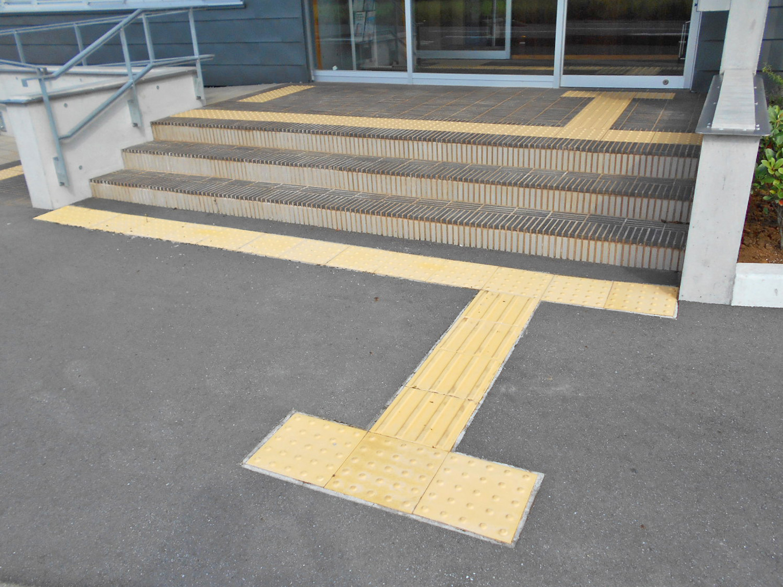 歩道から出入口までに視覚障害者誘導用ブロックがある