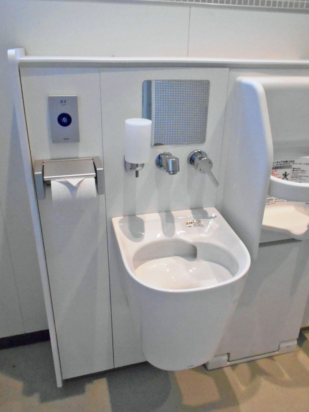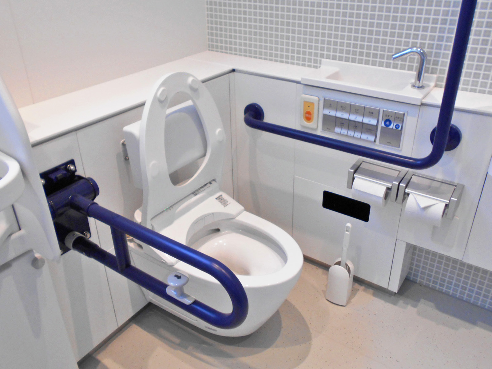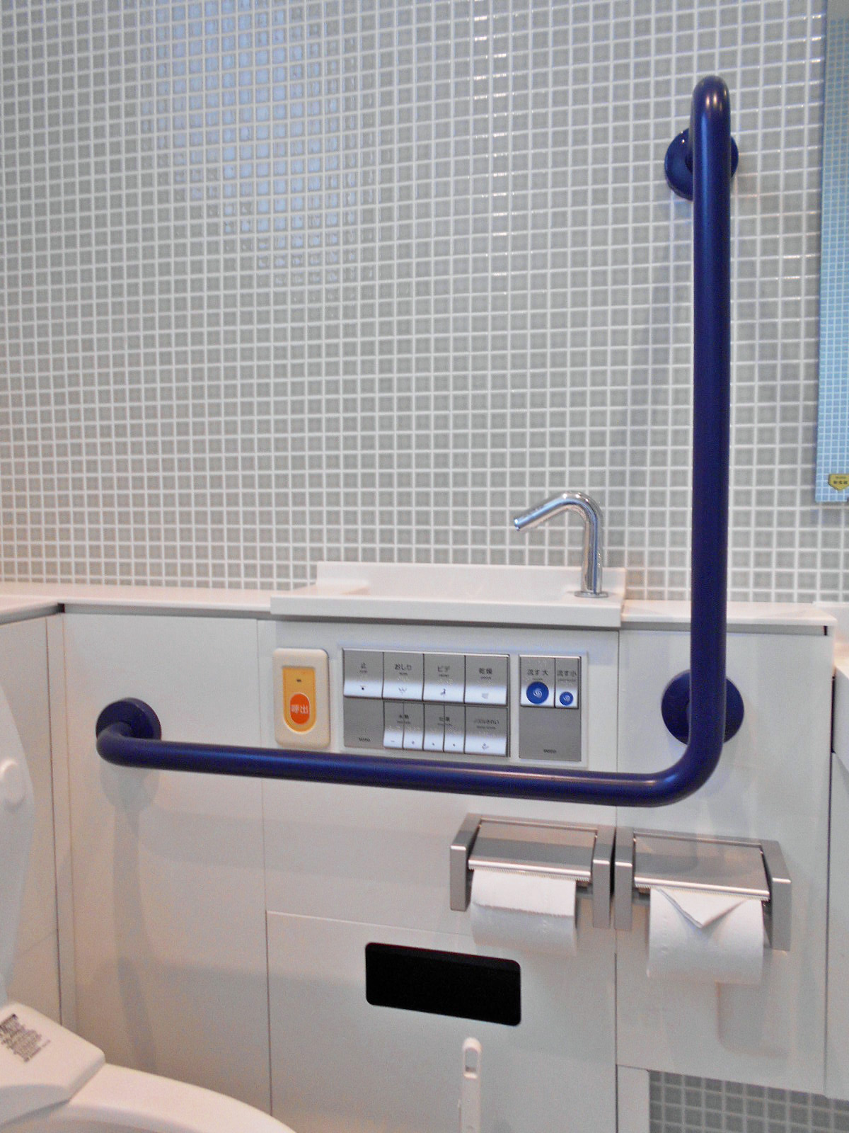- 多目的トイレのベビーベッドはベビーシートで対応、フィッティングボード付きベビーチェアあり