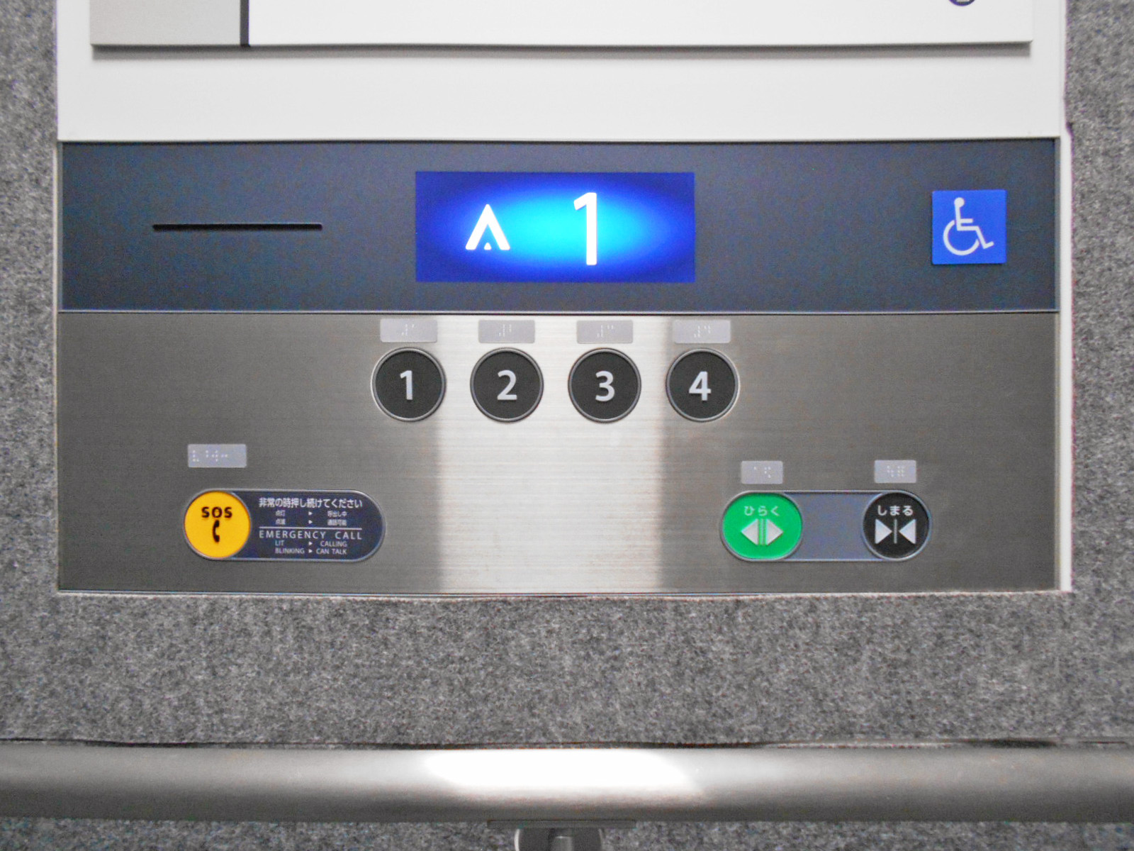 障害者対応エレベーターに点字表示ボタンがある