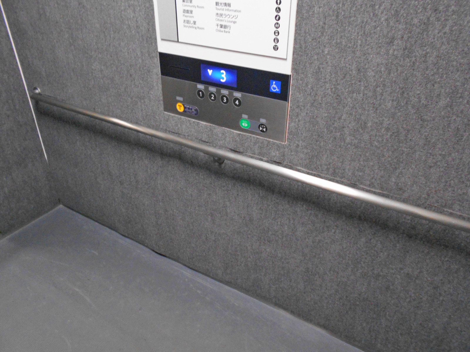 障害者対応エレベーターに手すりがある