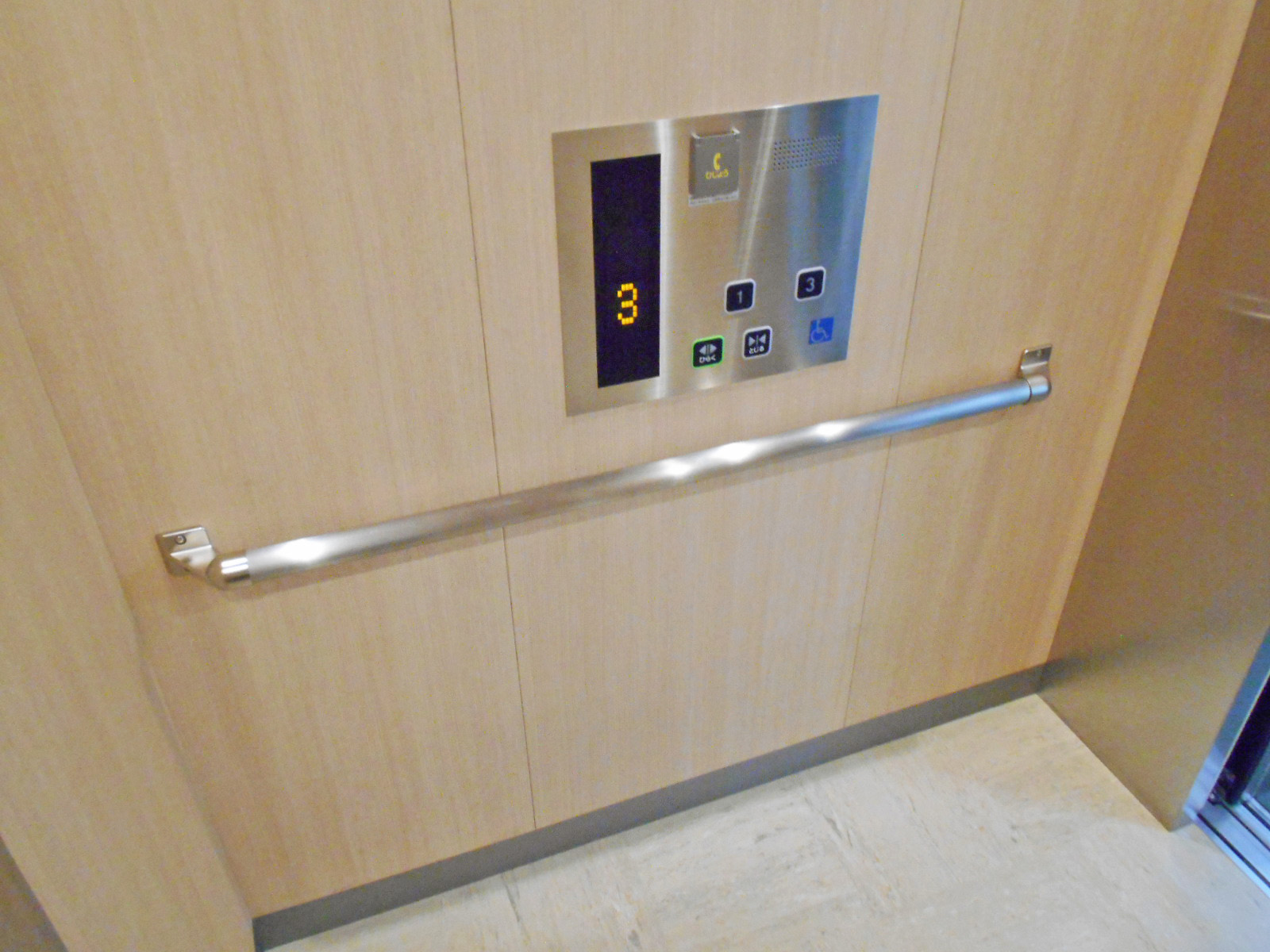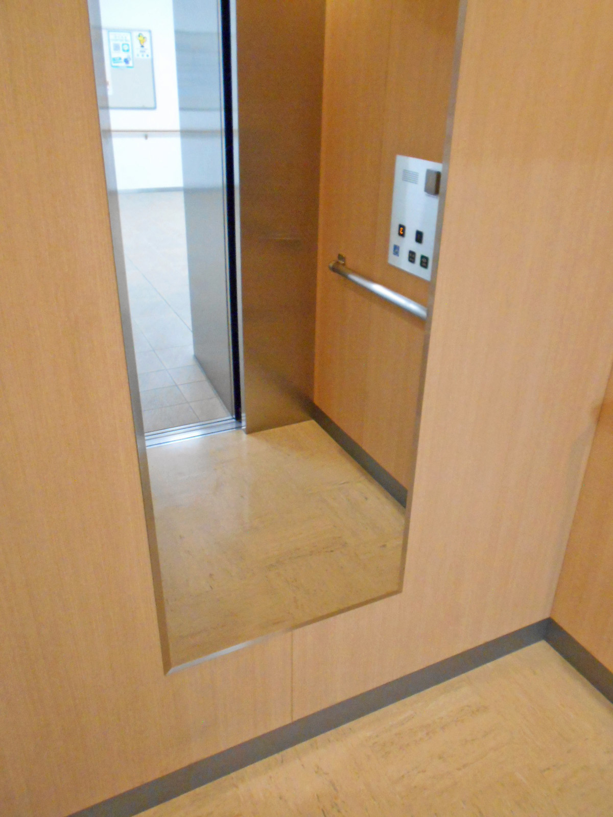 障害者対応エレベーターに手すりがある