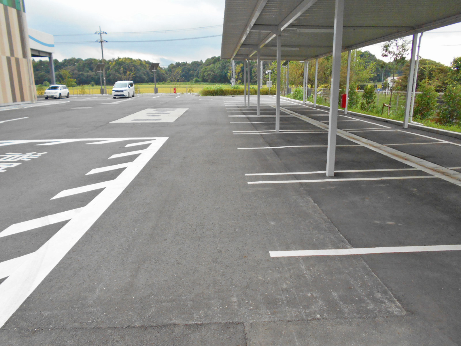 障害者等用駐車スペースに屋根がある:1台