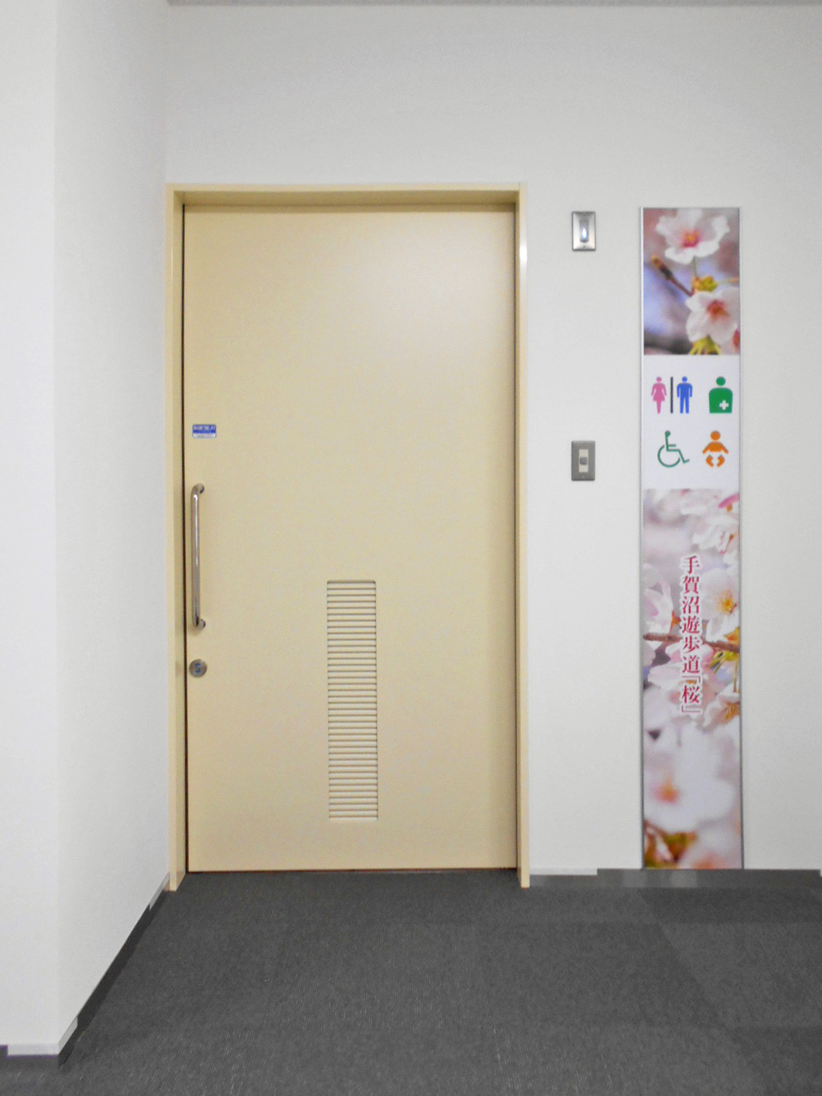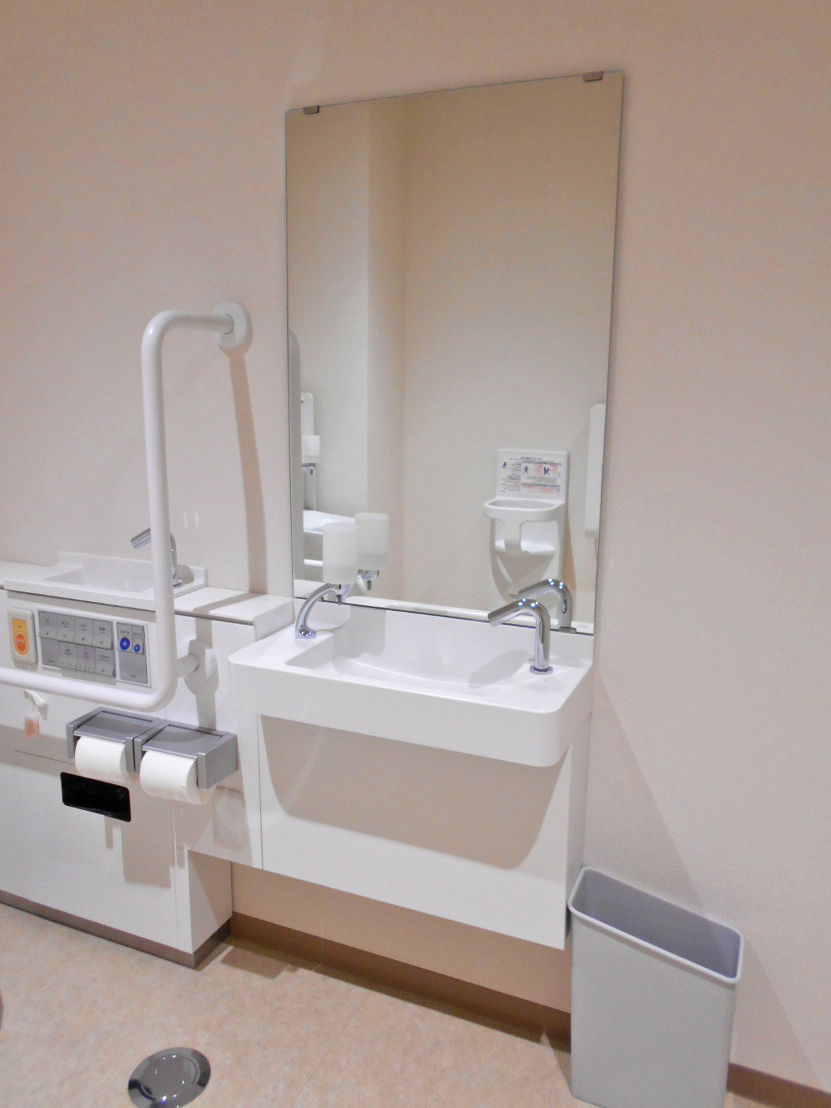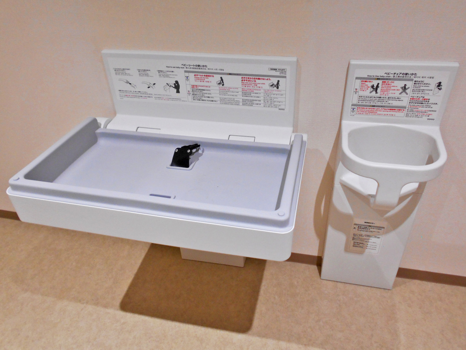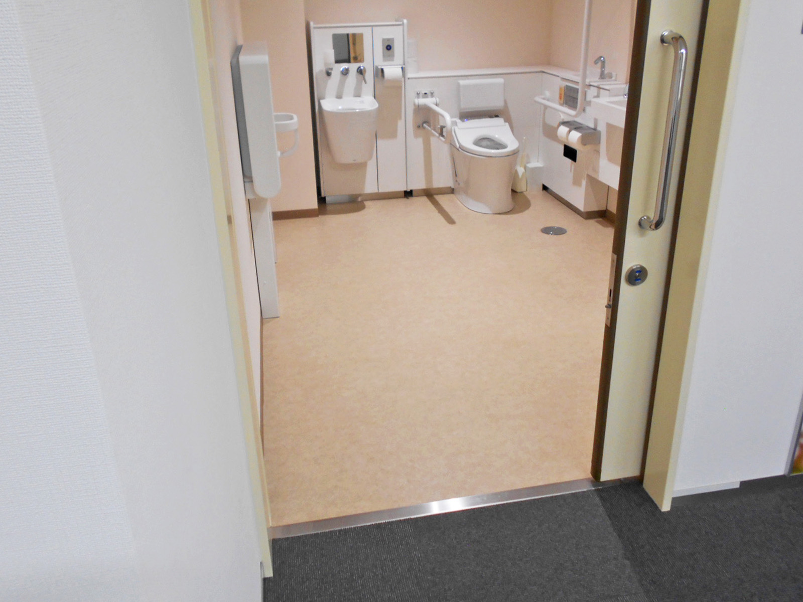 - 多目的トイレのベビーベッドはベビーシートで対応、ベビーチェアあり