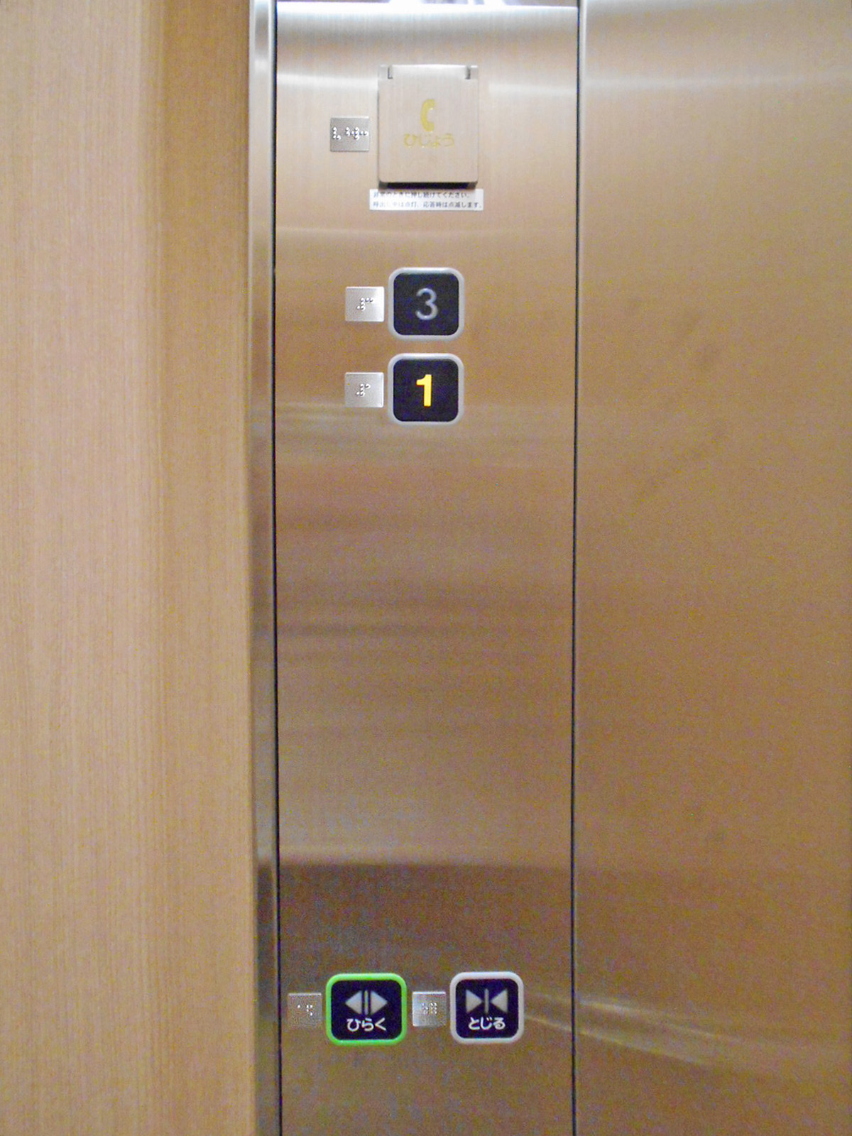 障害者対応エレベーターに点字表示ボタンがある