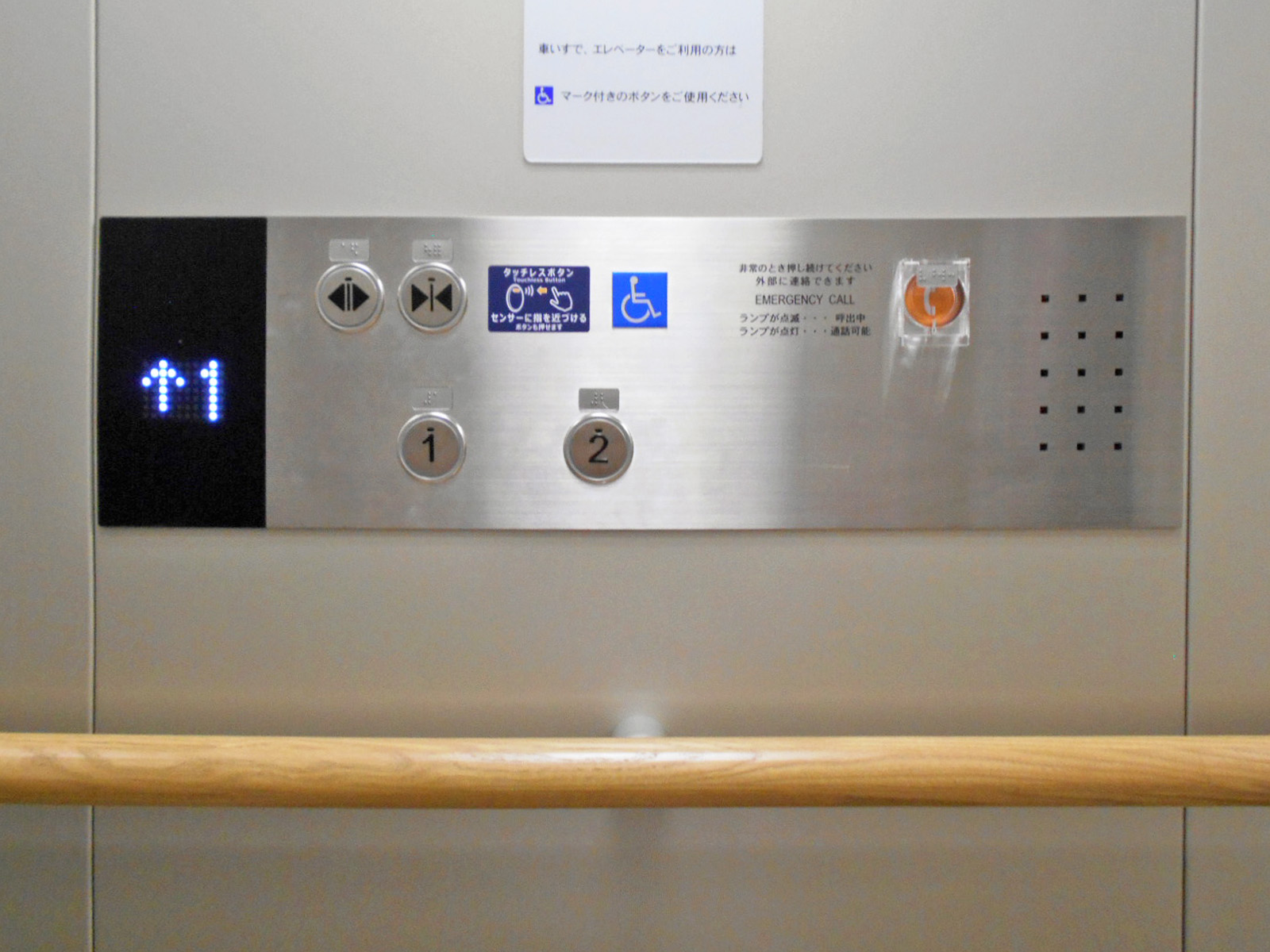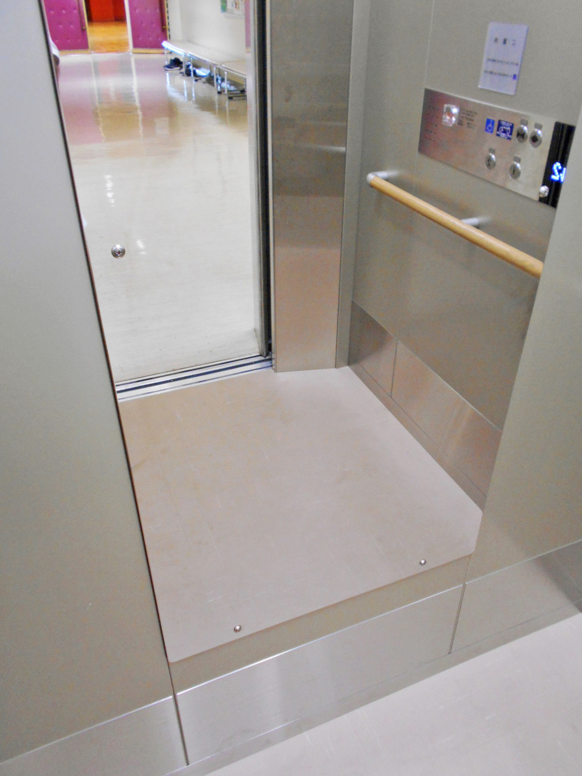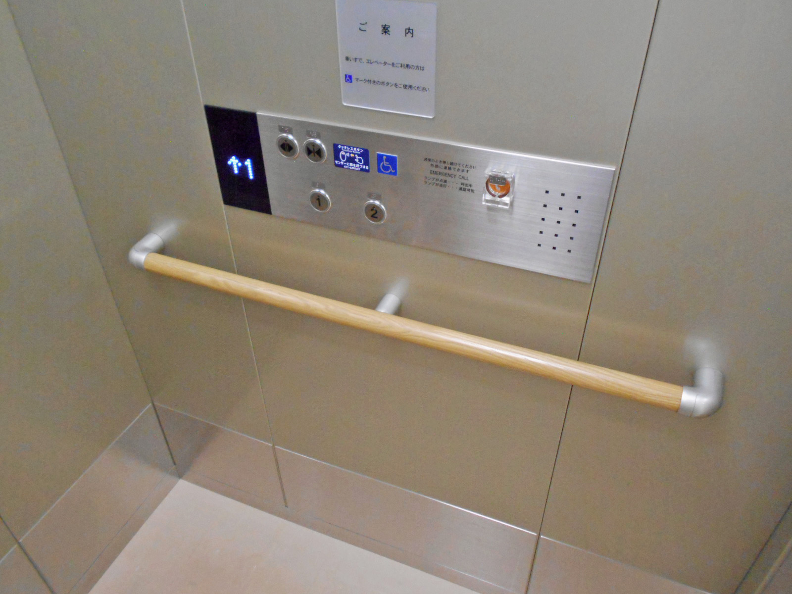 障害者対応エレベーターに手すりがある