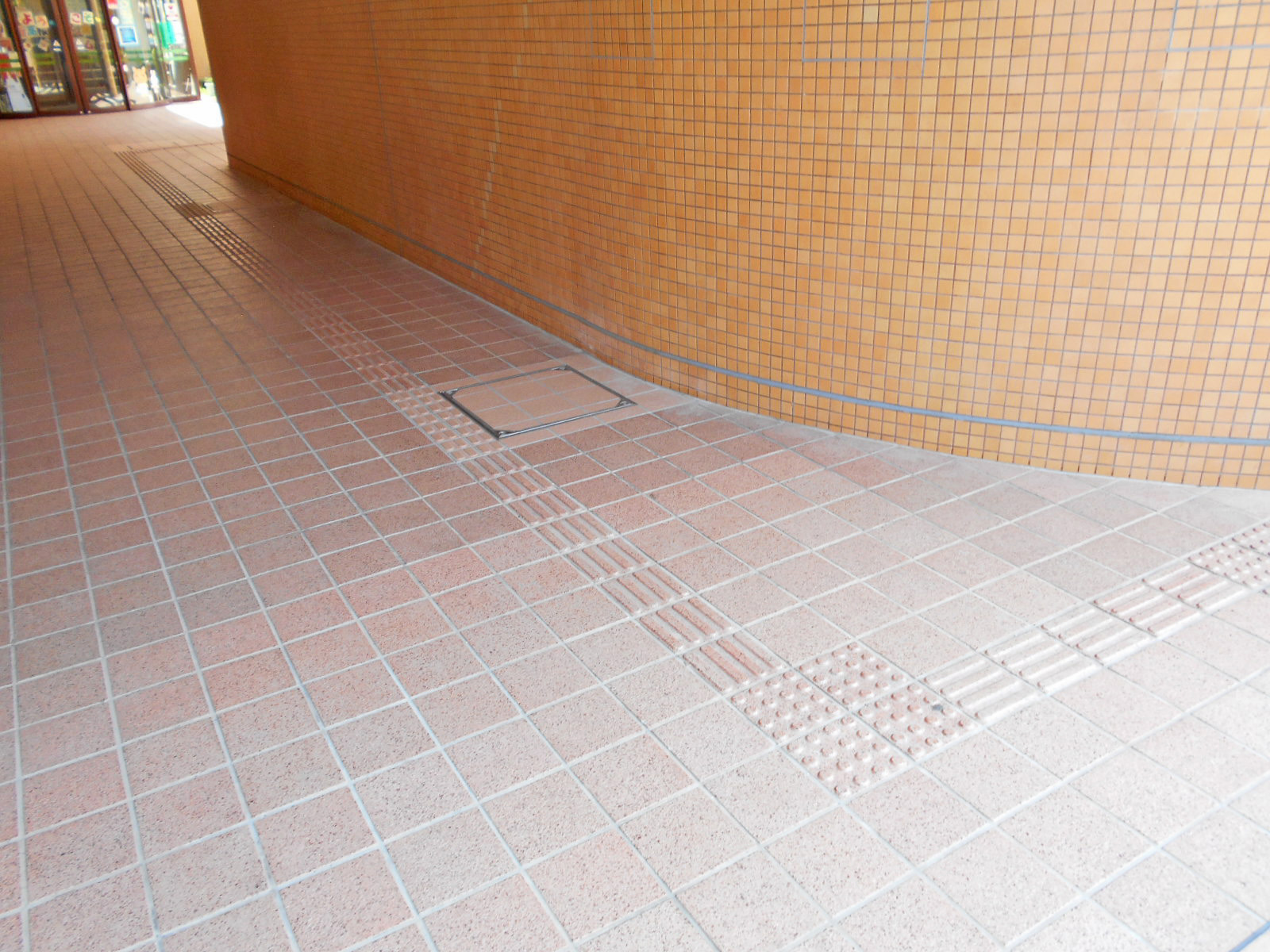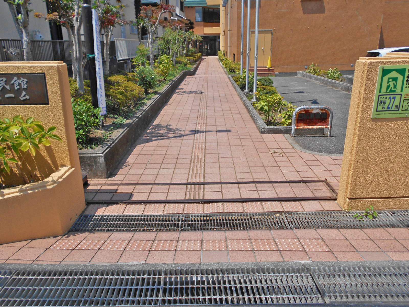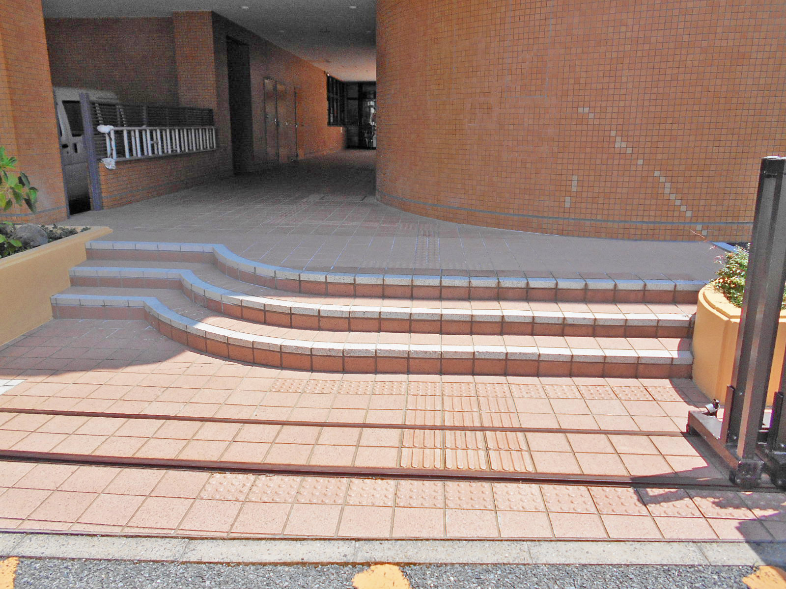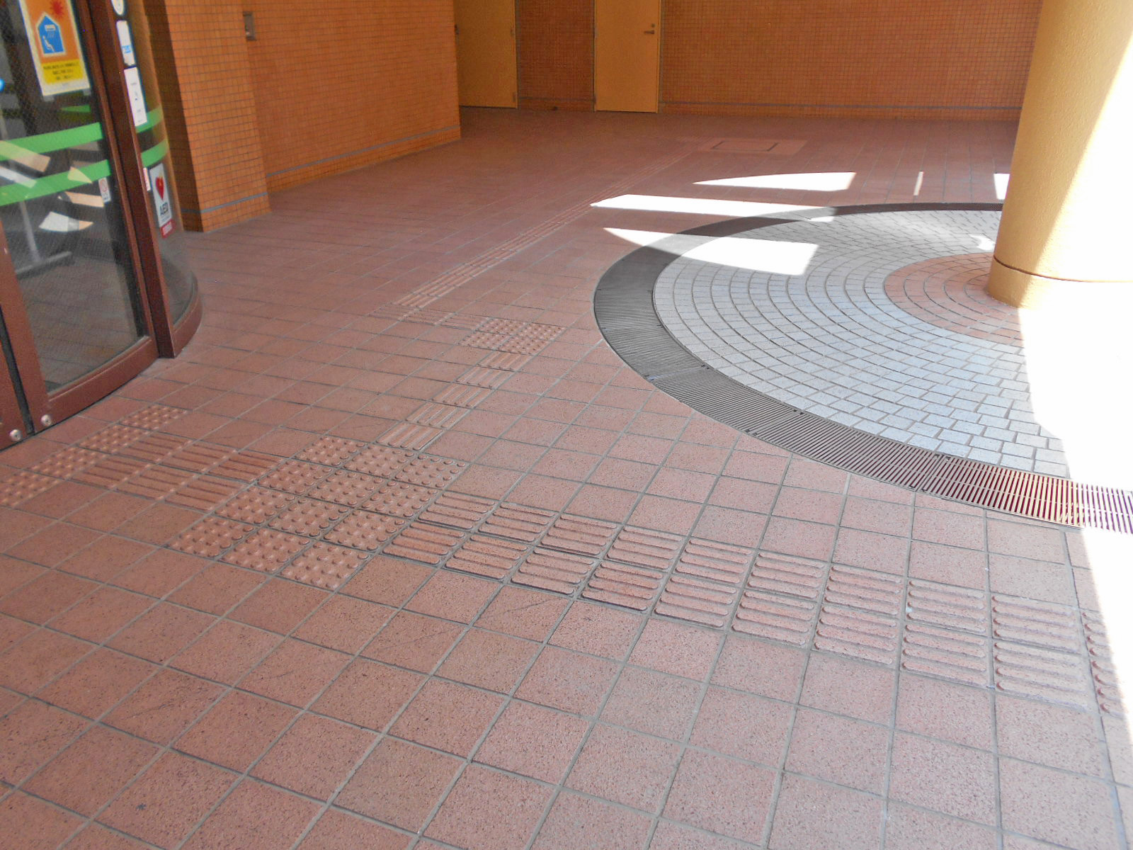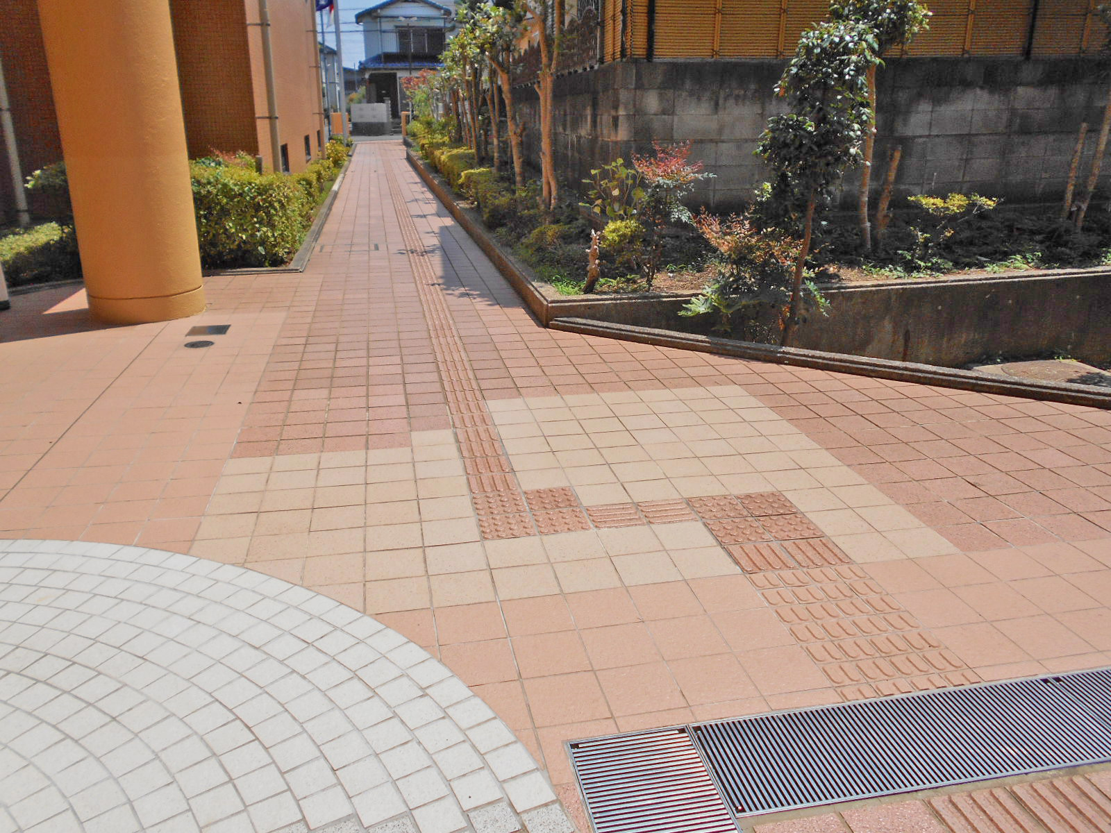 歩道から出入口までに視覚障害者誘導用ブロックがある