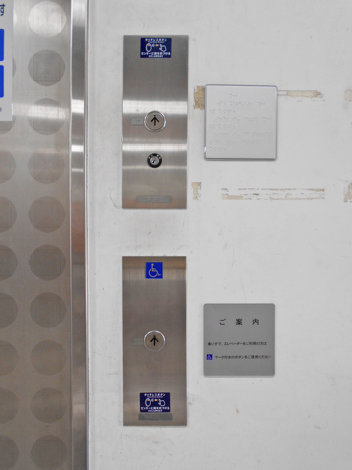 障害者対応エレベーターに点字表示ボタンがある