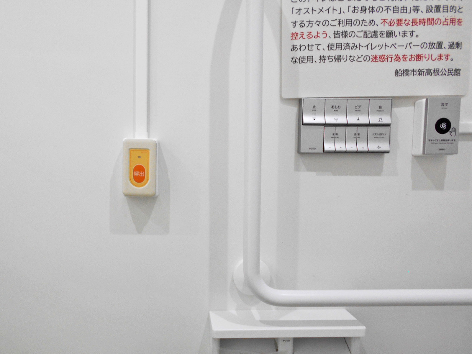 非常ベルが便座から手が届く範囲にある通信機器