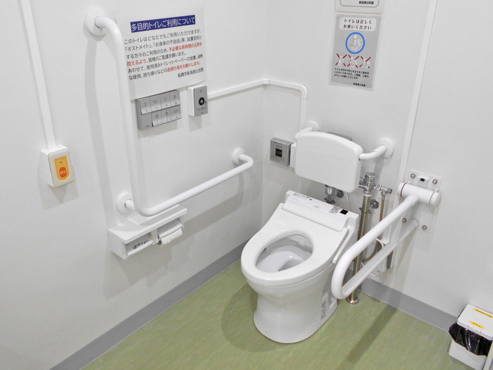 - 和式便器(一般用トイレ)の手すりは前側に縦・横があり、洋式便器(一般用トイレ)の手すりは右側もあり