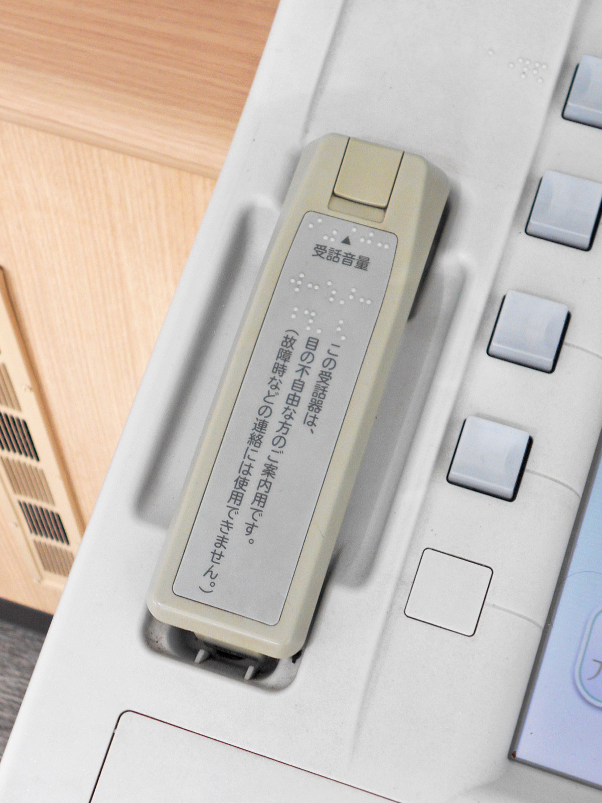 - 視覚障害者専用操作誘導音声案内受話器、点字・点字金額表示器、音声ガイダンス聴取用イヤホンジャックあり