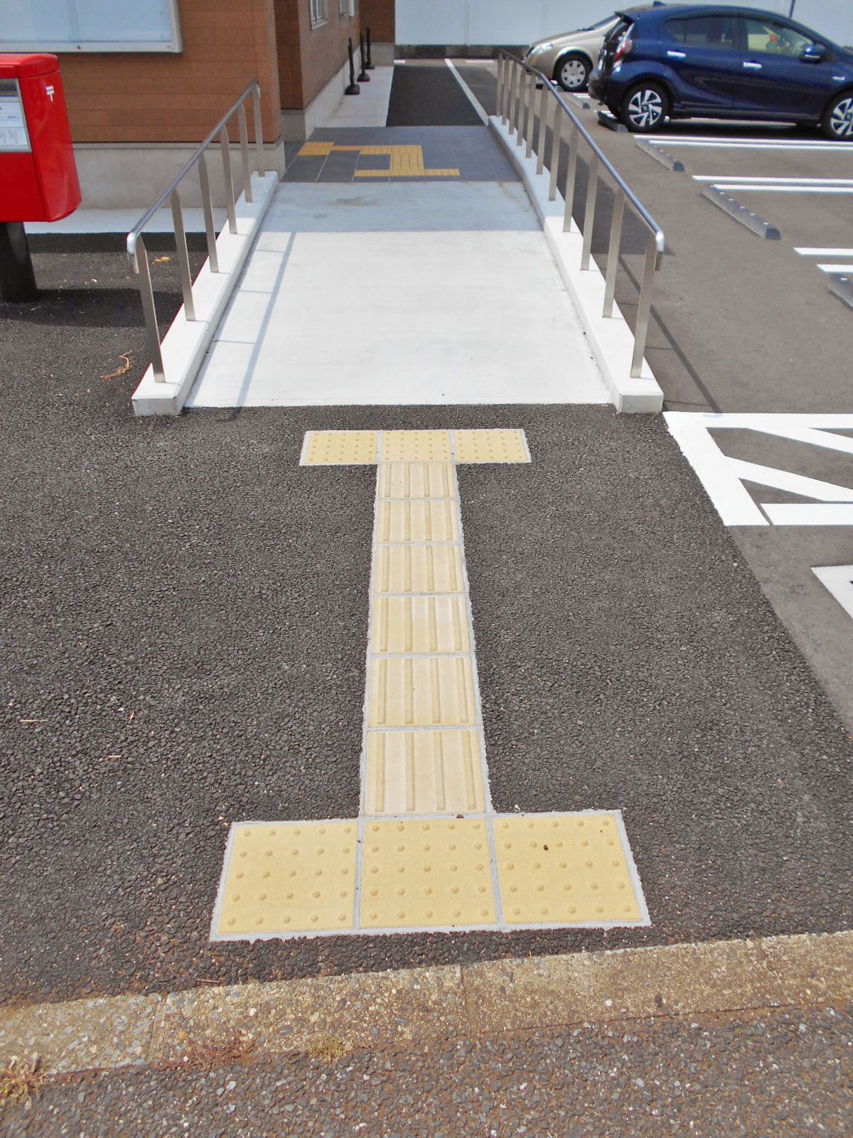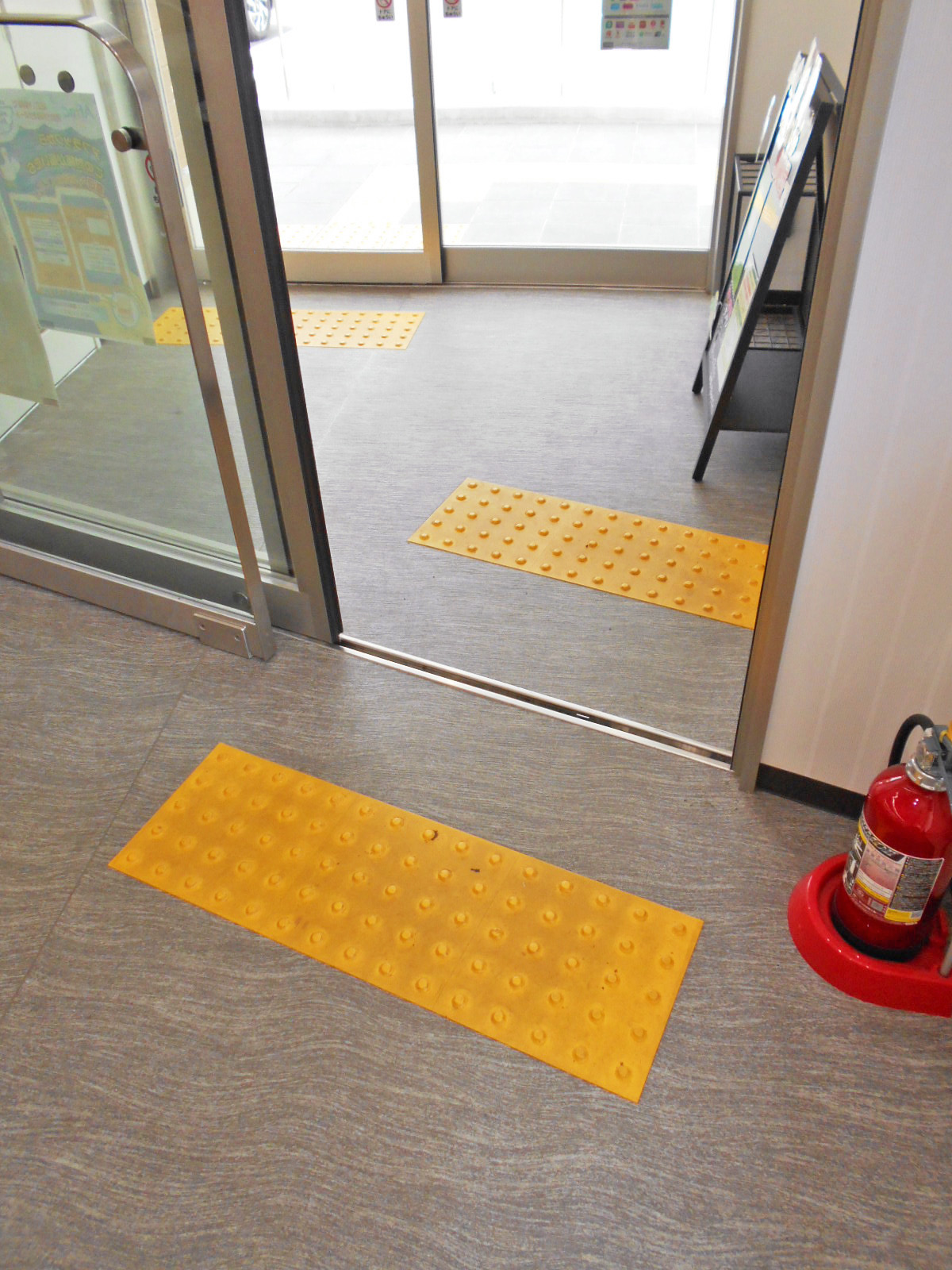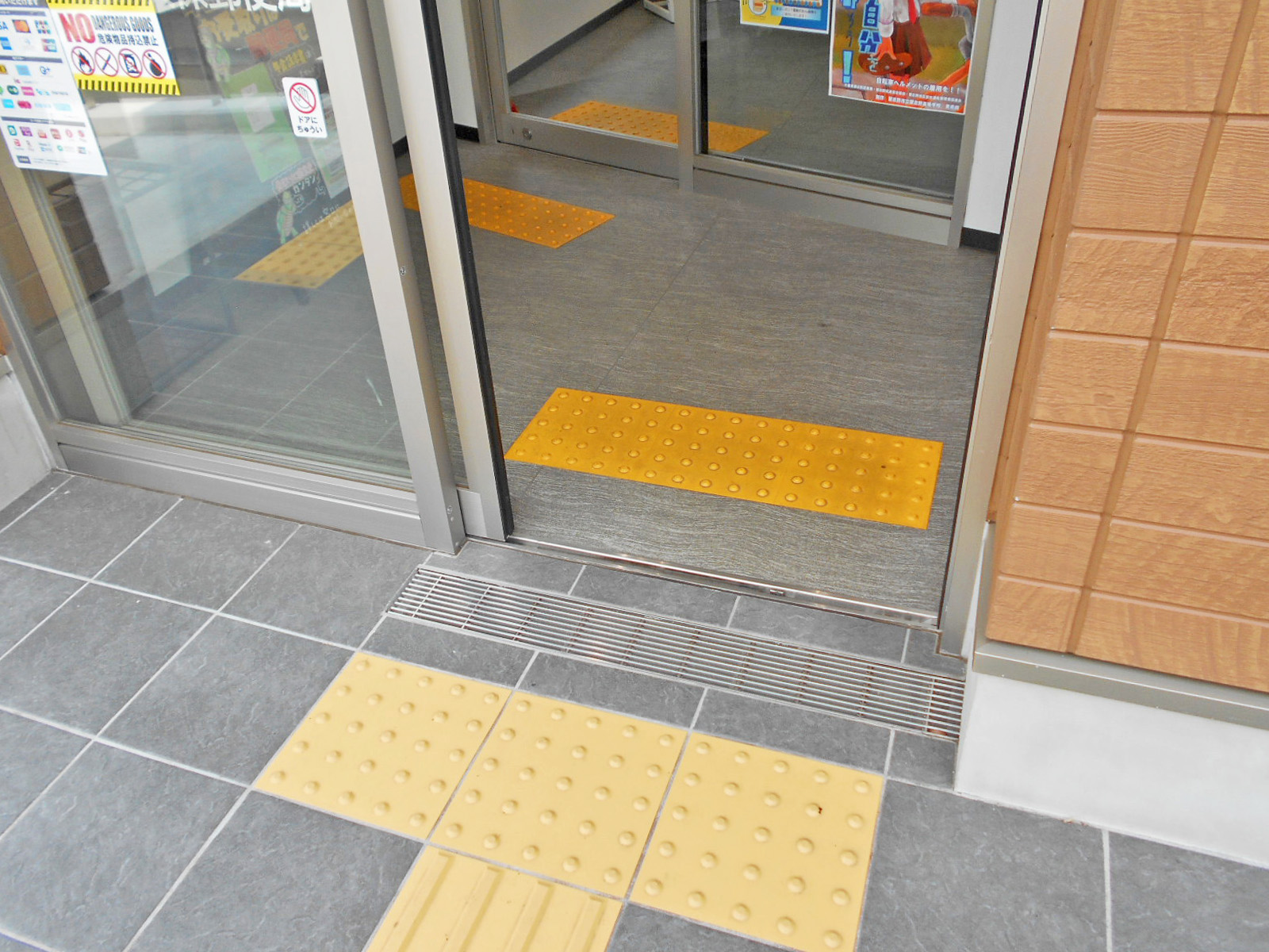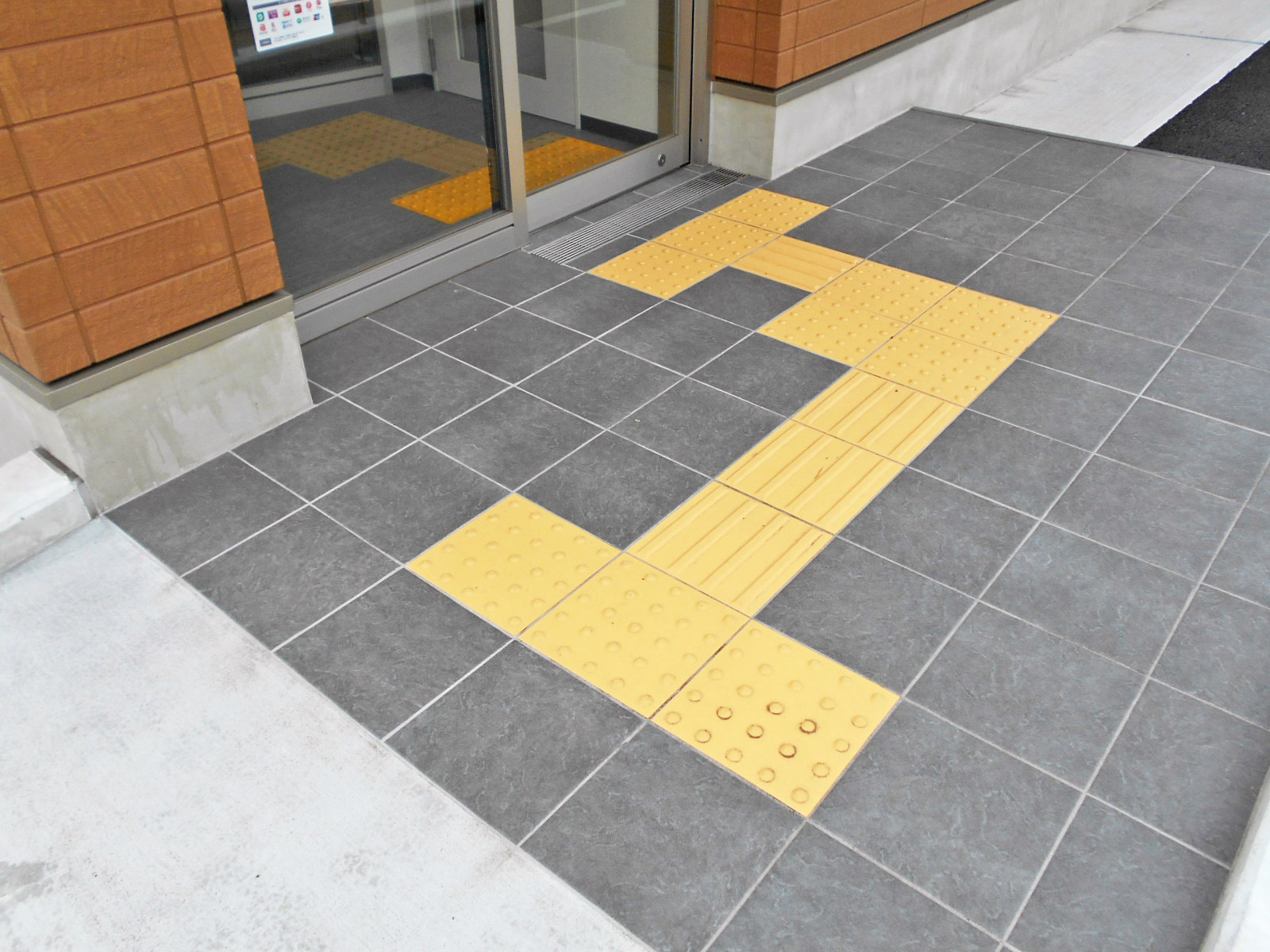歩道から出入口までに視覚障害者誘導用ブロックがある