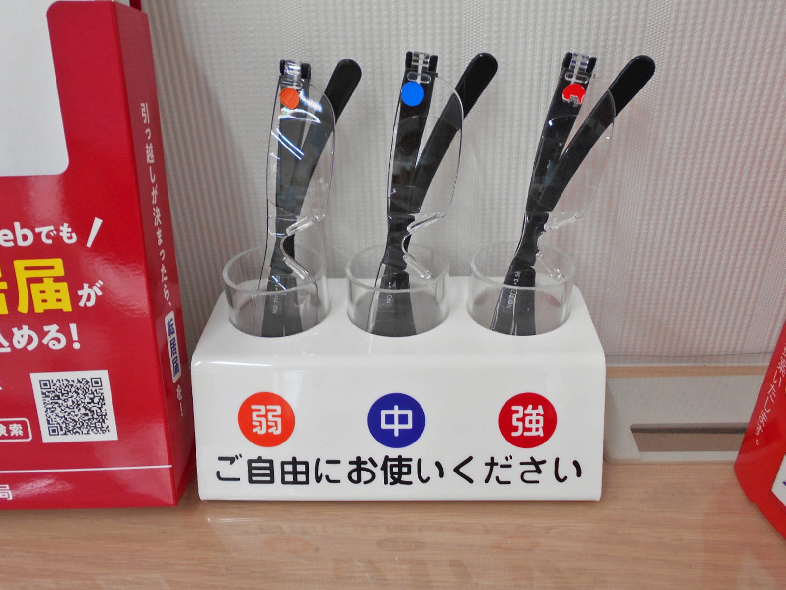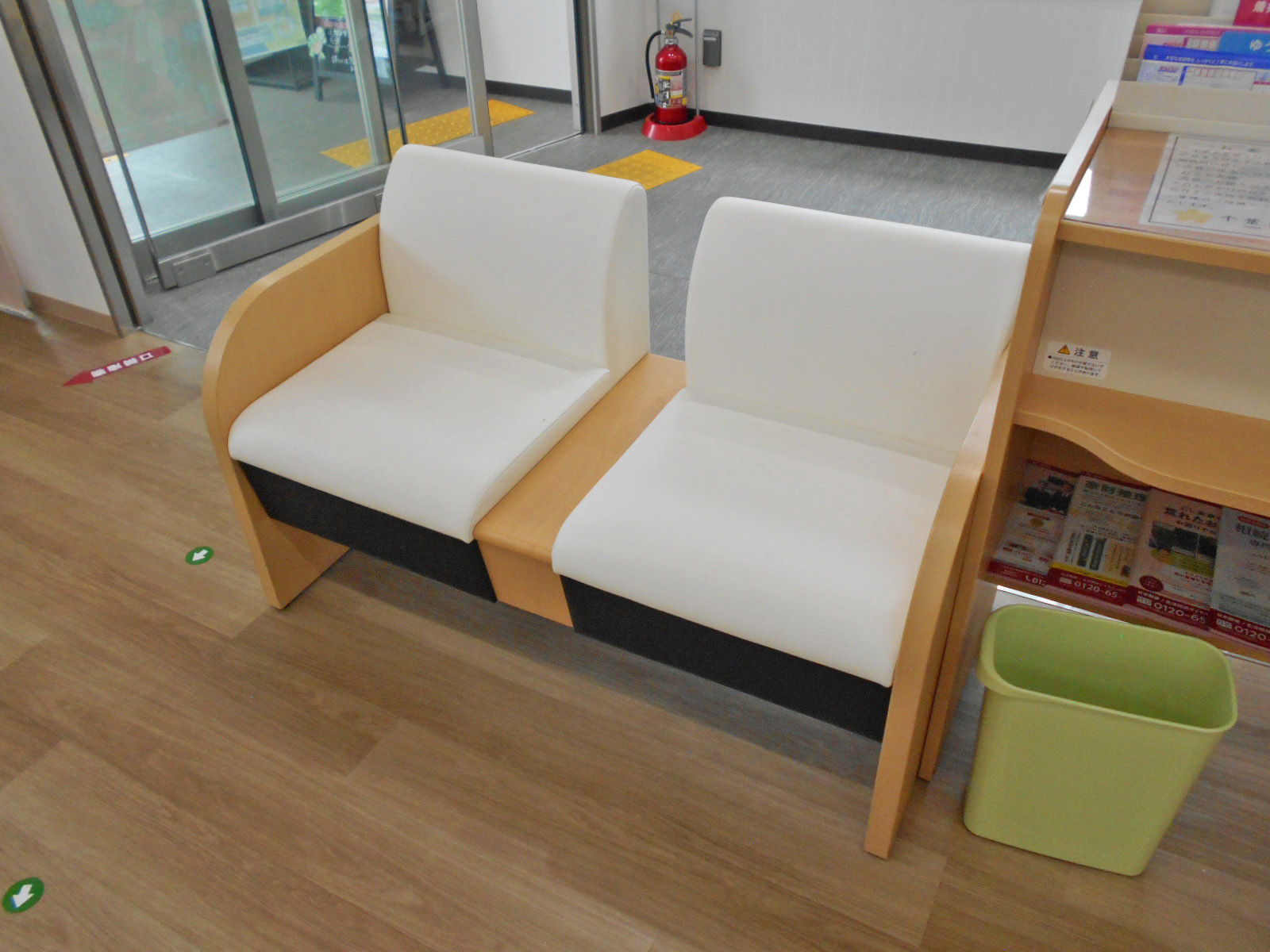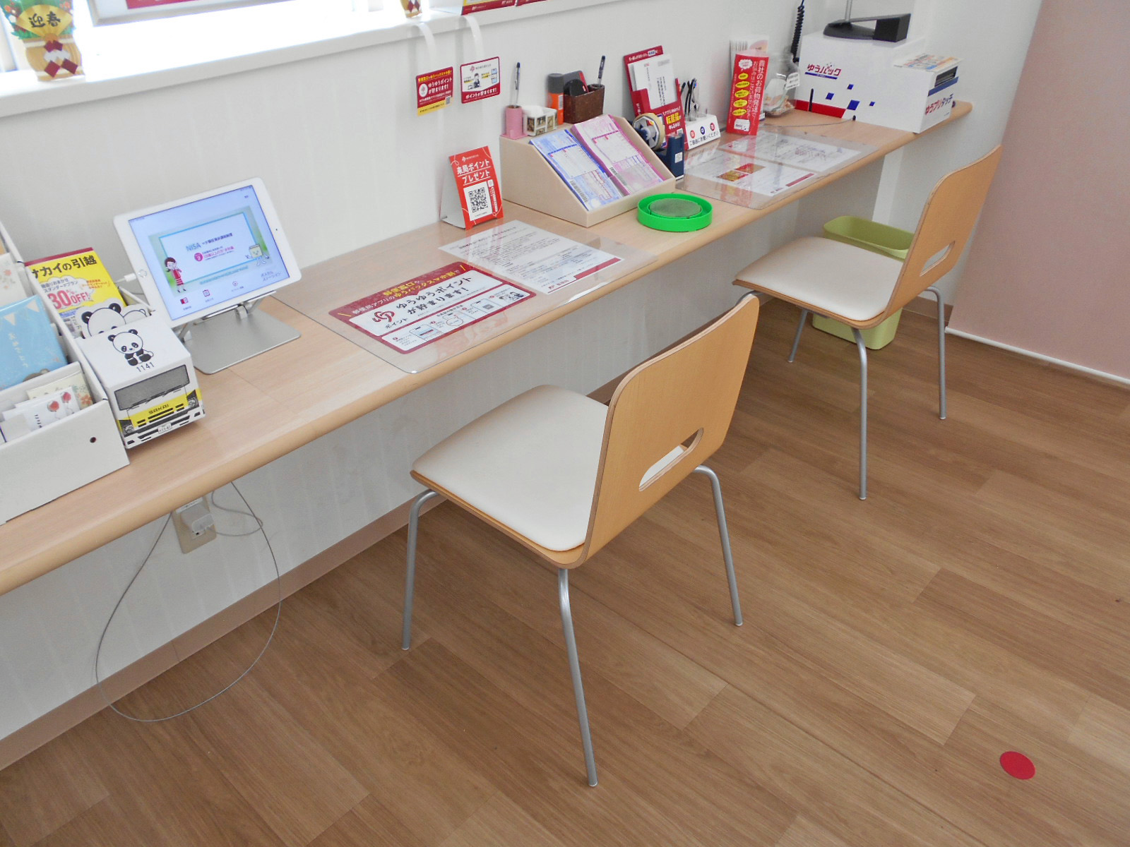 - ローカウンターあり、低い記載台あり、荷物置き付カウンターにつえホルダーあり