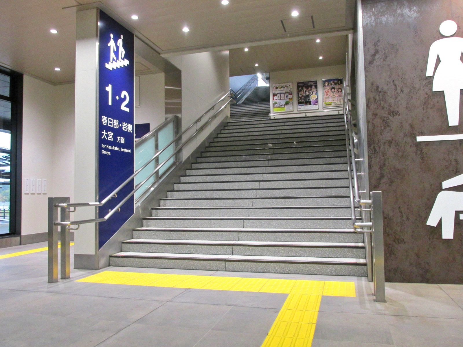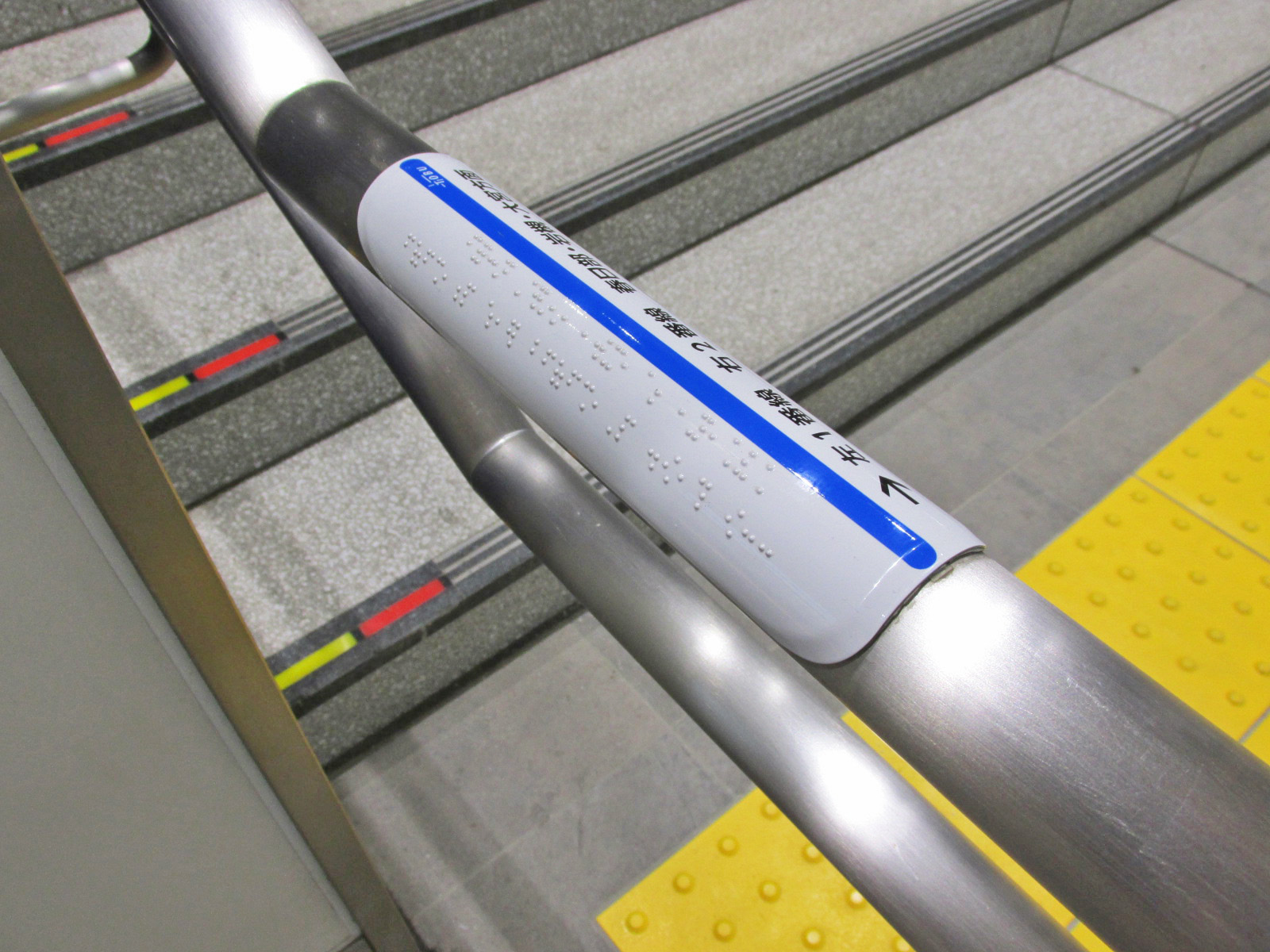 階段の手すりに点字表示があるトイレ