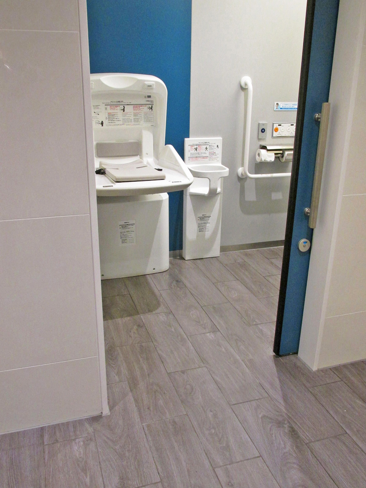 - おむつ交換室は男性用・女性用多目的トイレのベビーシートで対応