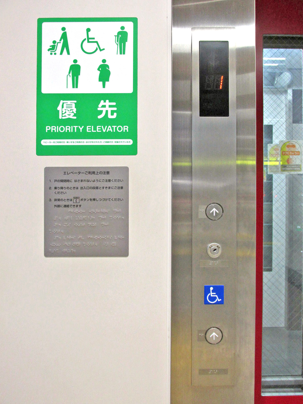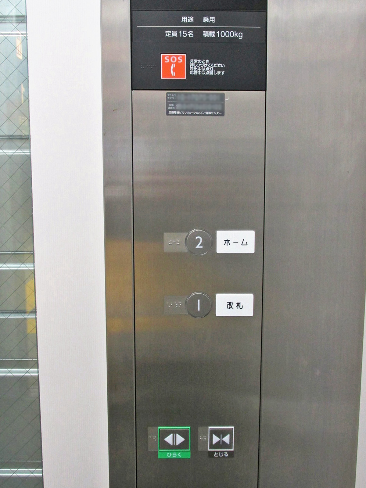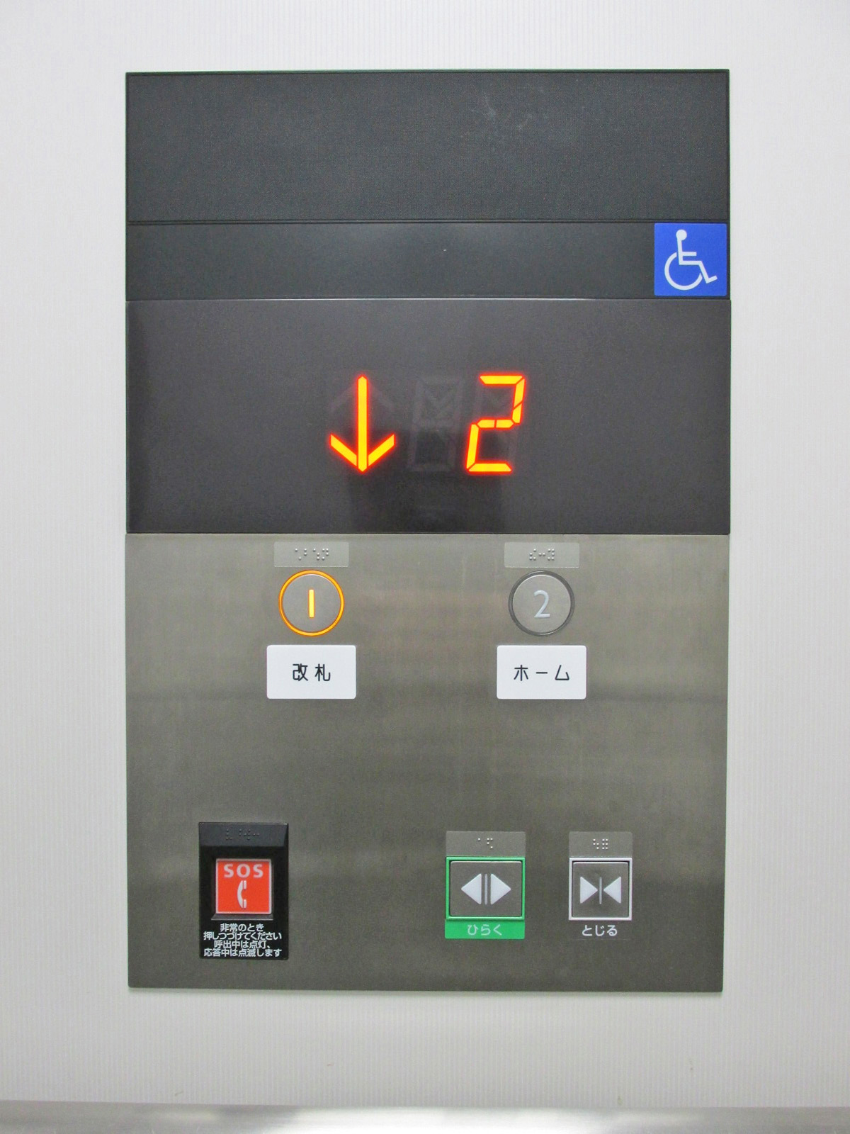 障害者対応エレベーターに点字表示ボタンがある