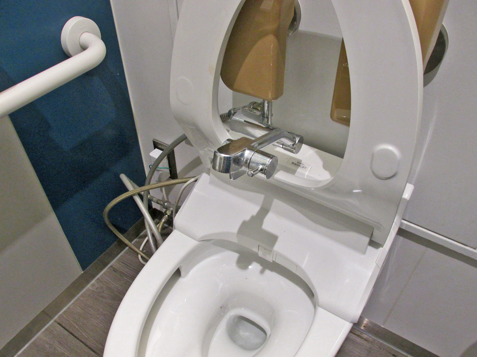 洋式便器(左手すり付き)があるバリアフリートイレ