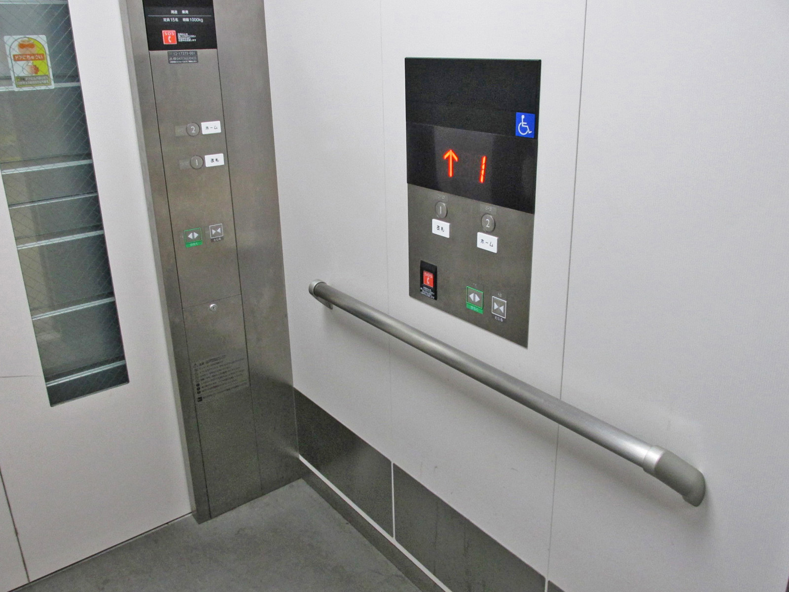 障害者対応エレベーターに手すりがある