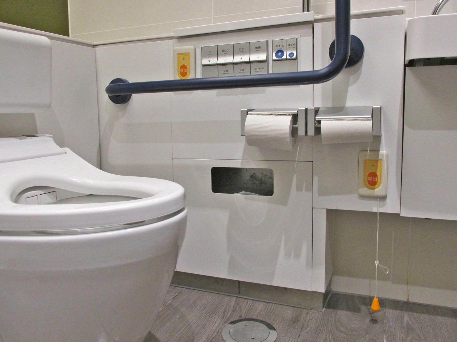 非常ベルが便座から手が届く範囲にある