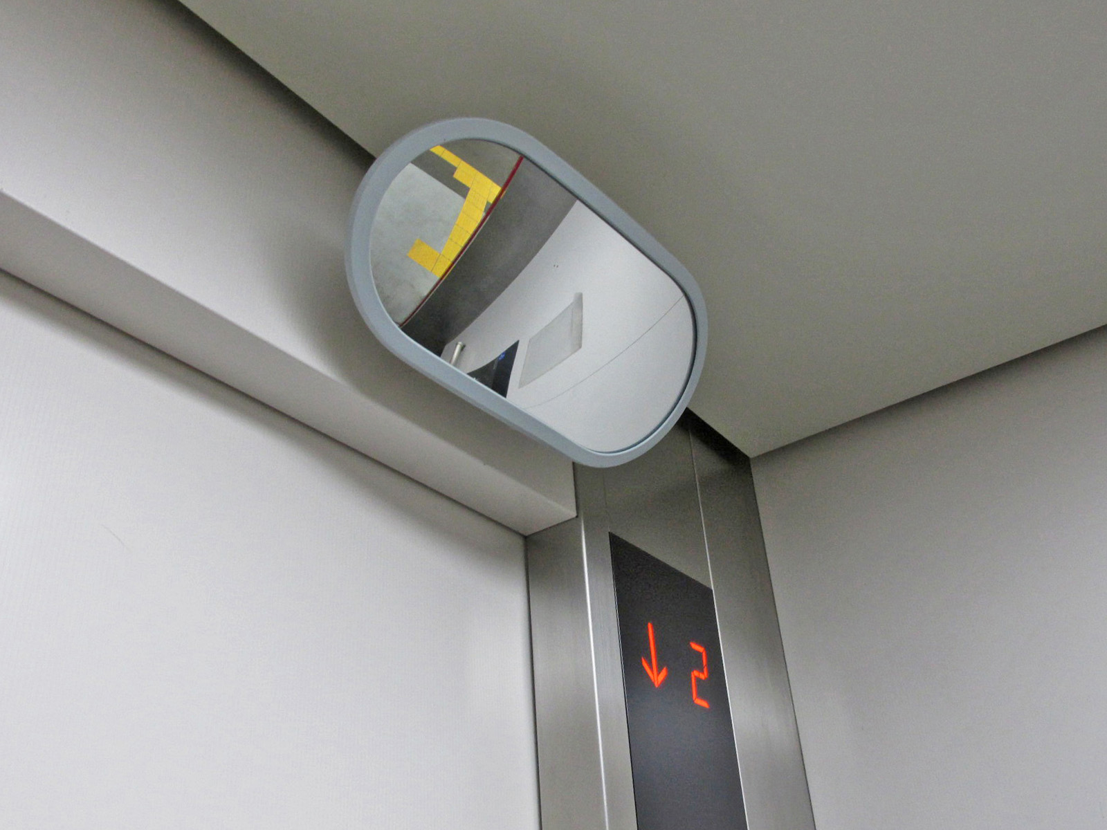 障害者対応エレベーターに鏡がある