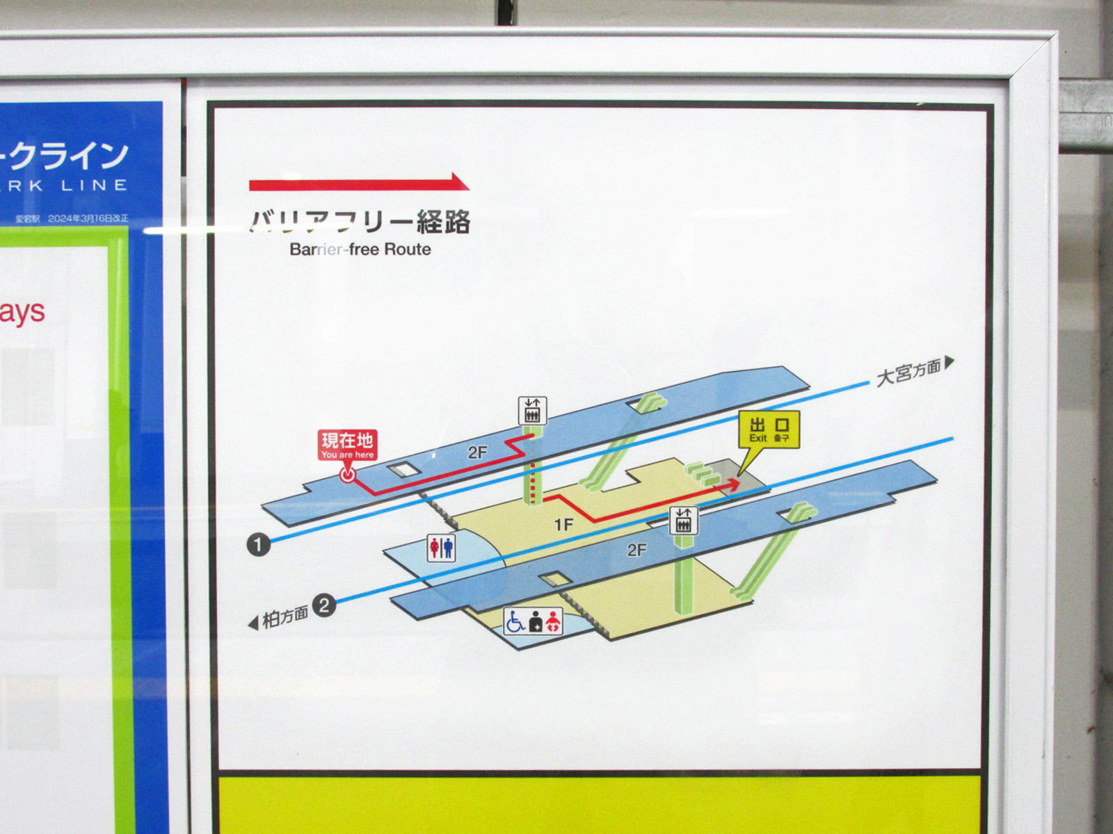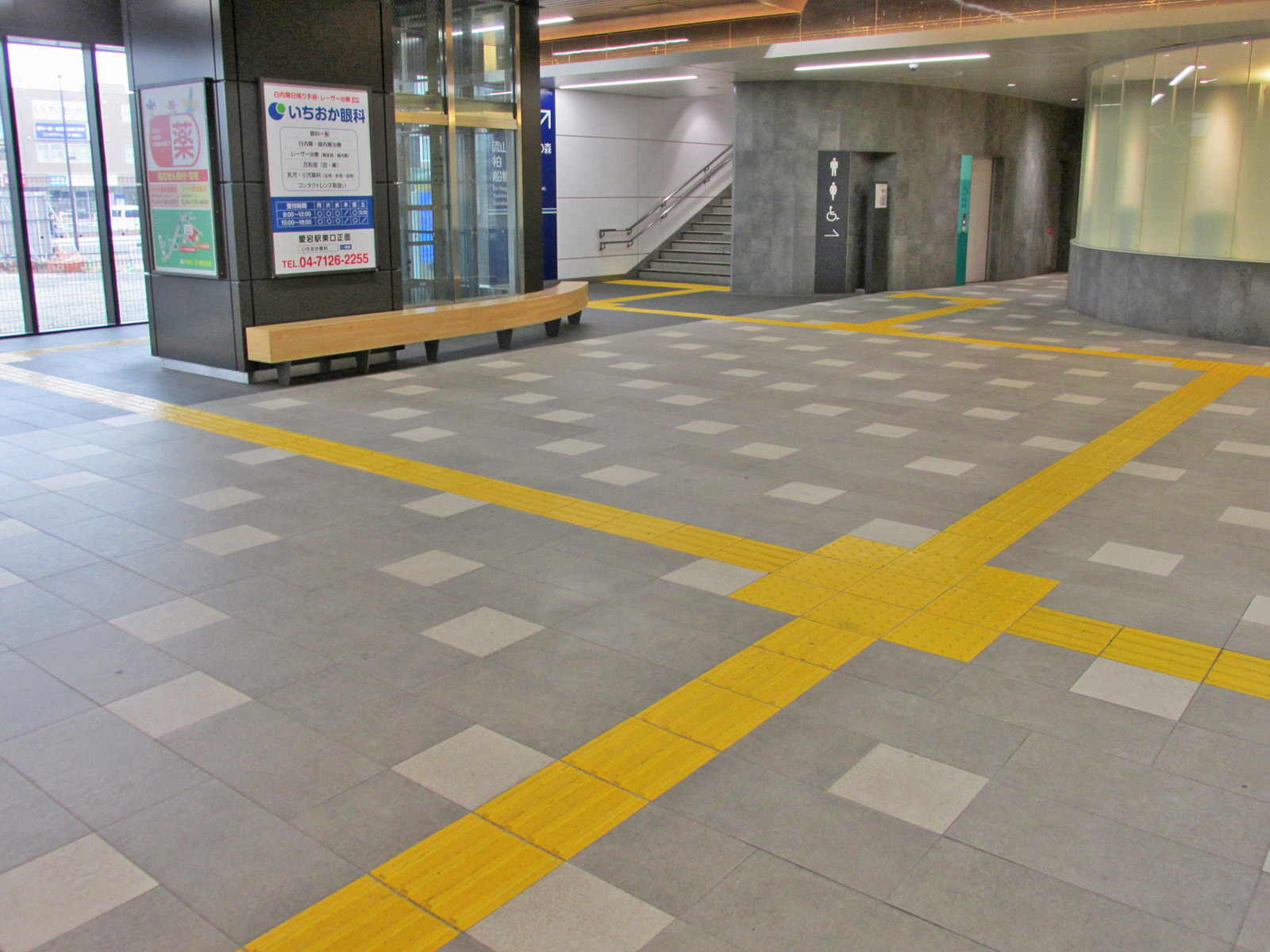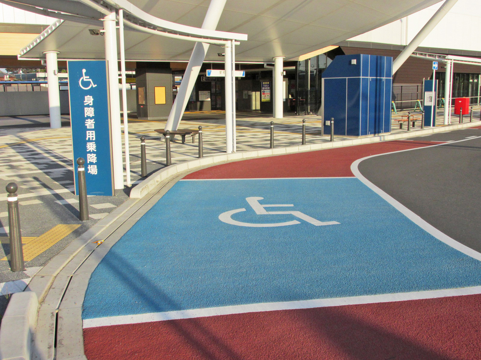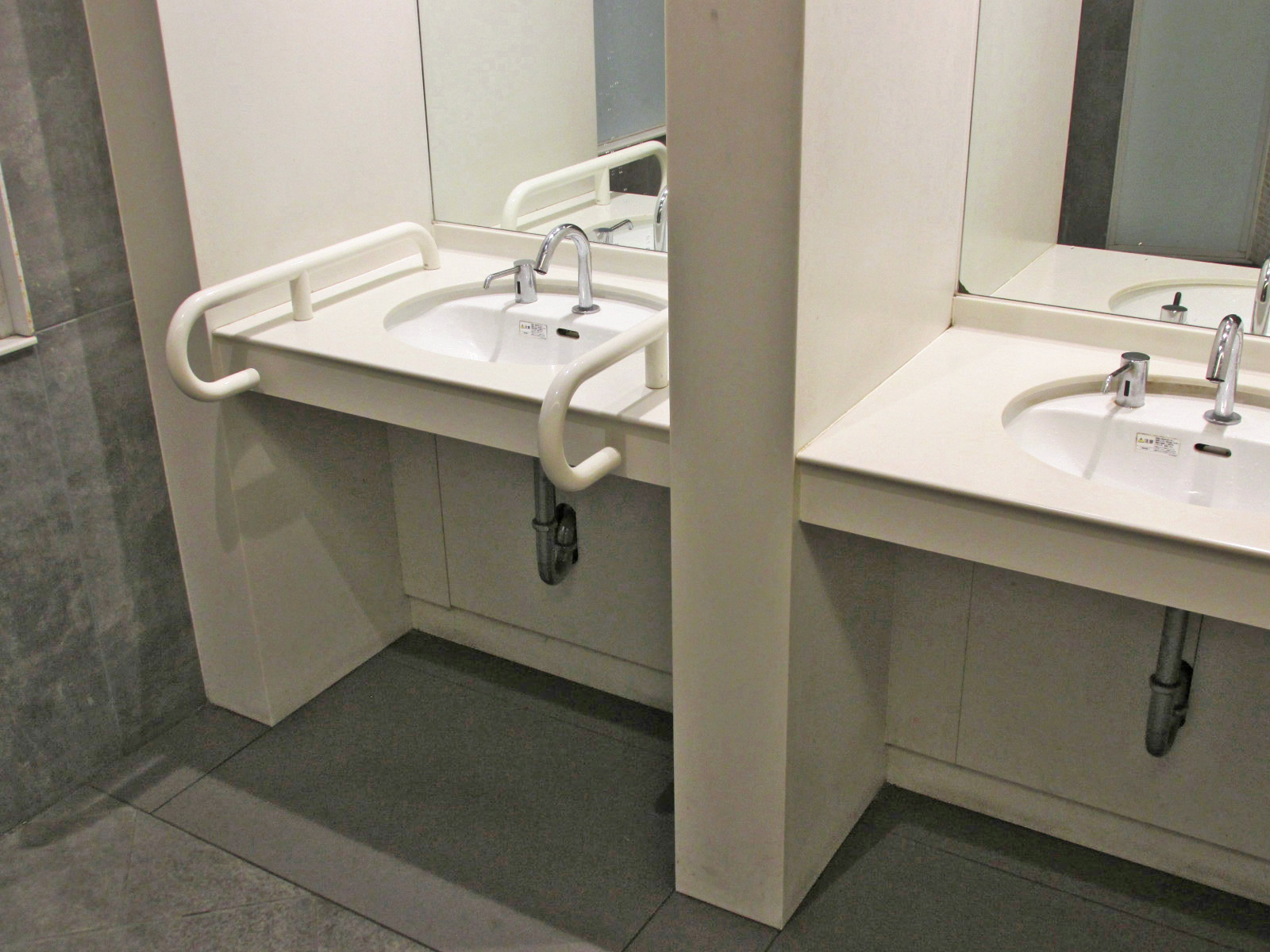 - 男性用・女性用多目的トイレにはパウチしびん洗浄水栓使用型オストメイト対応設備設置あり、男女共用多目的トイレの手すりは右壁-右手すり固定左手すり可動、男性用多目的トイレの手すりは女性用多目的トイレと同様に設置あり、男女共用多目的トイレの大人用ベッドは介助用ベッドで対応、男性用・女性用多目的トイレのベビーベッドはベビーシートで対応、男女共用多目的トイレに自動開閉ボタン・音声案内あり
