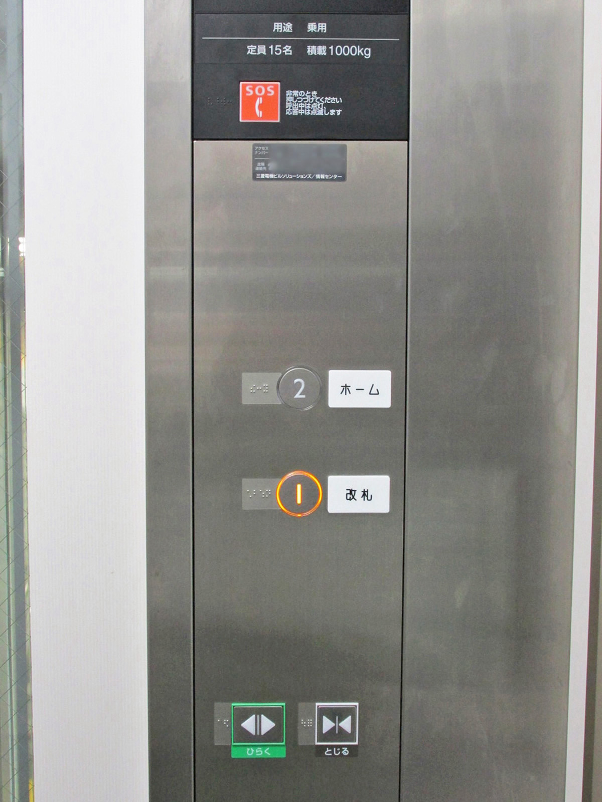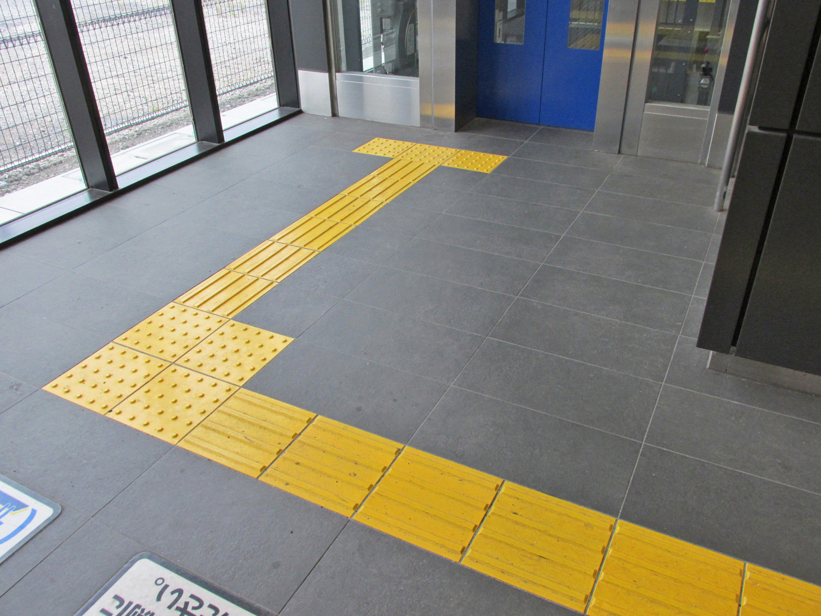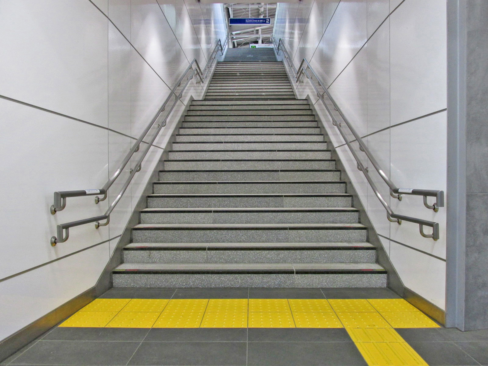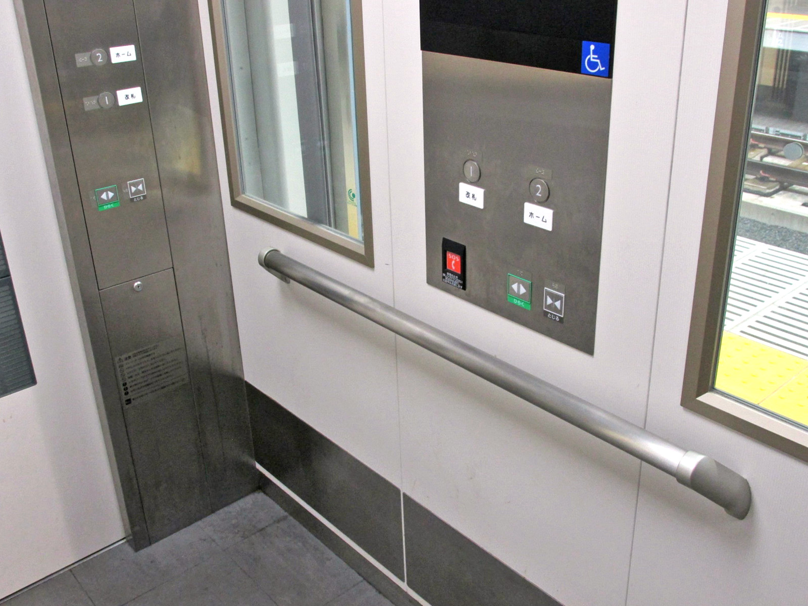 階段の手すりに点字表示がある - 障害者対応エレベーターの詳細