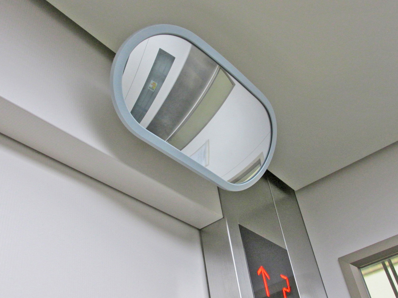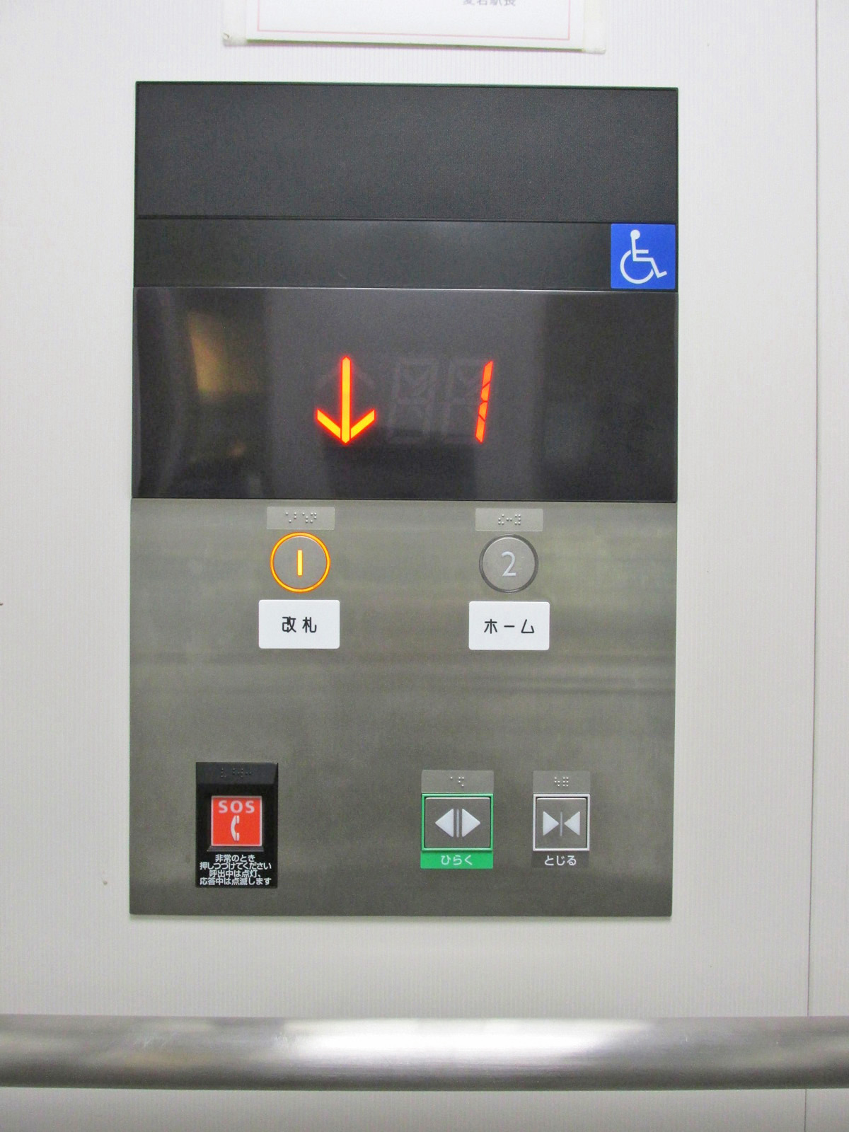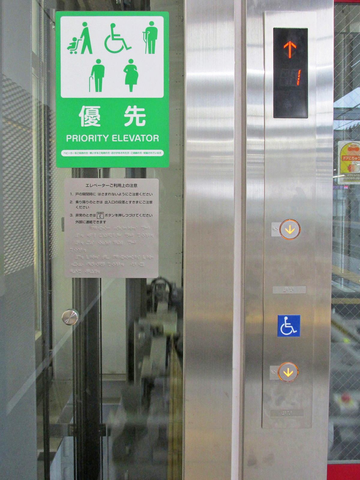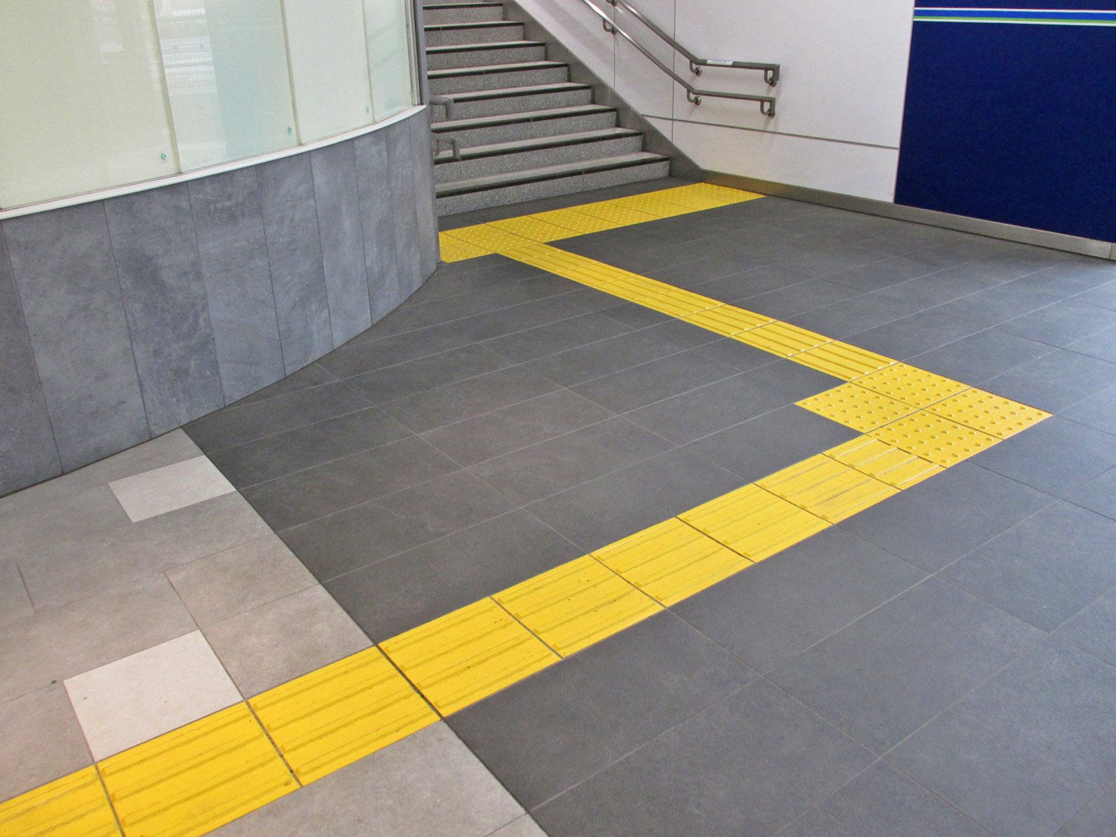 階段の手すりに点字表示がある - 障害者対応エレベーターの詳細