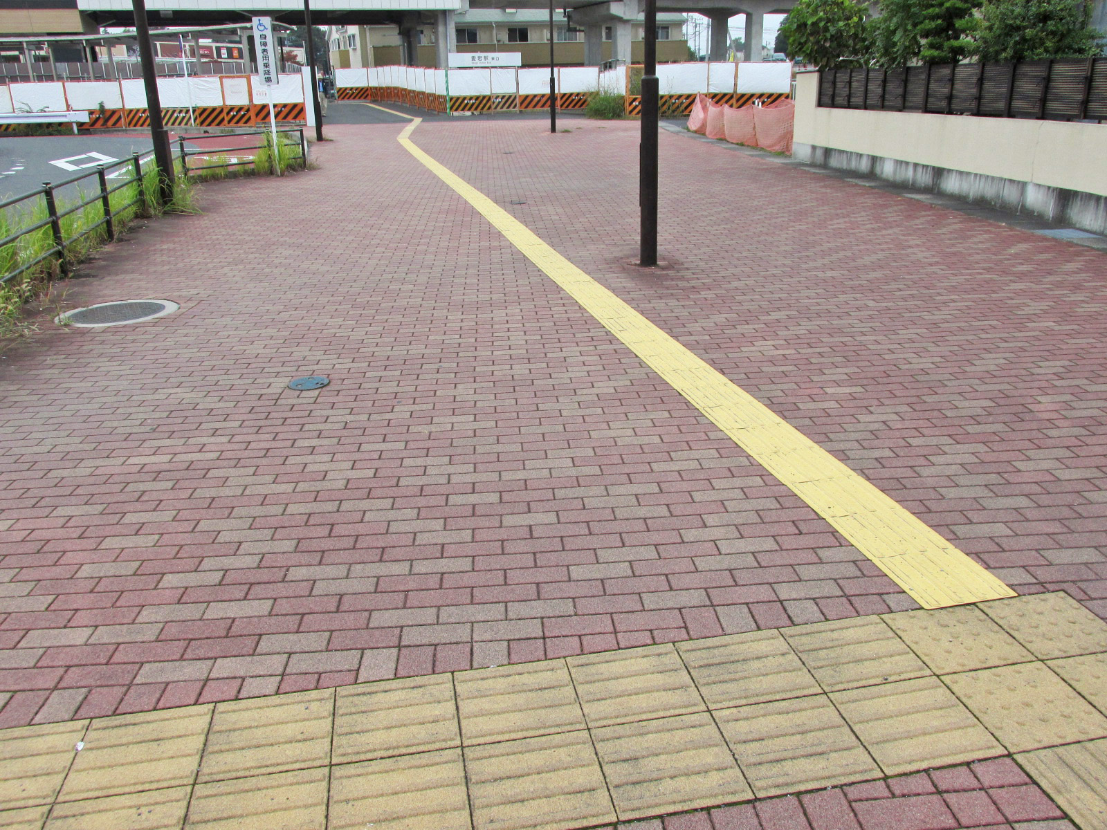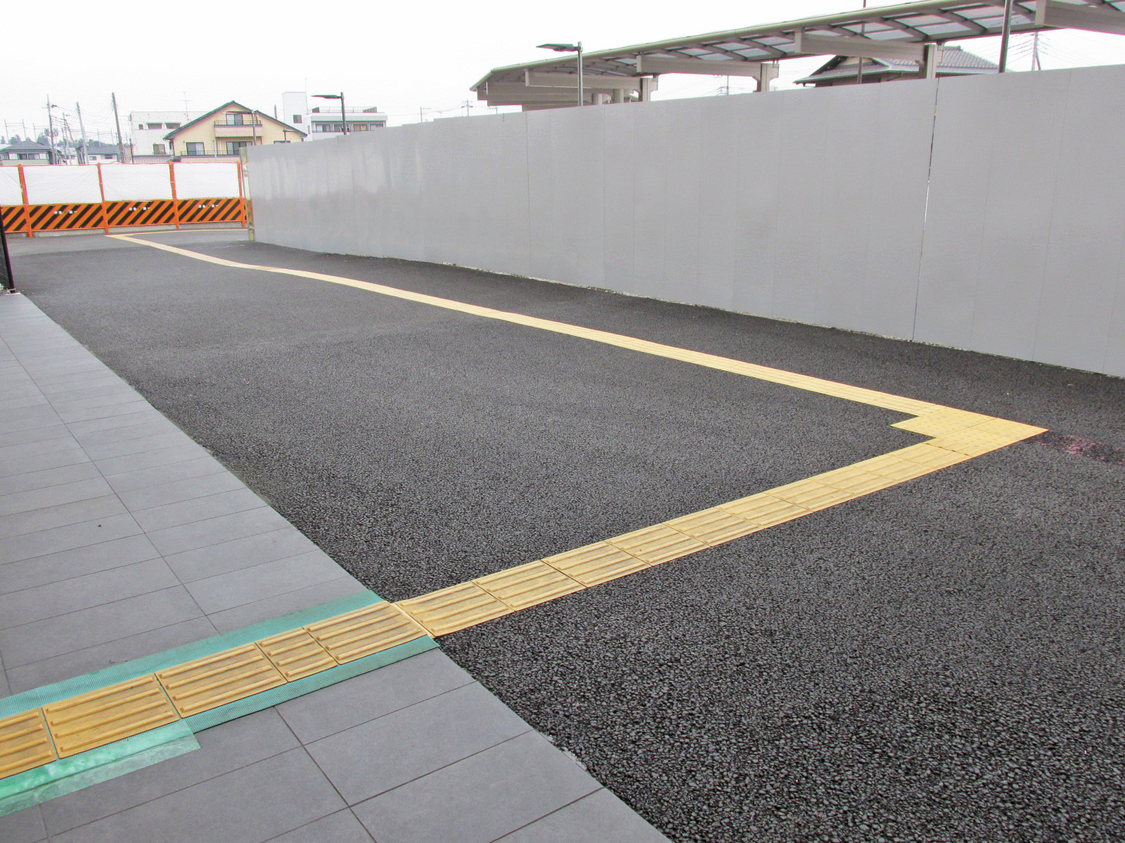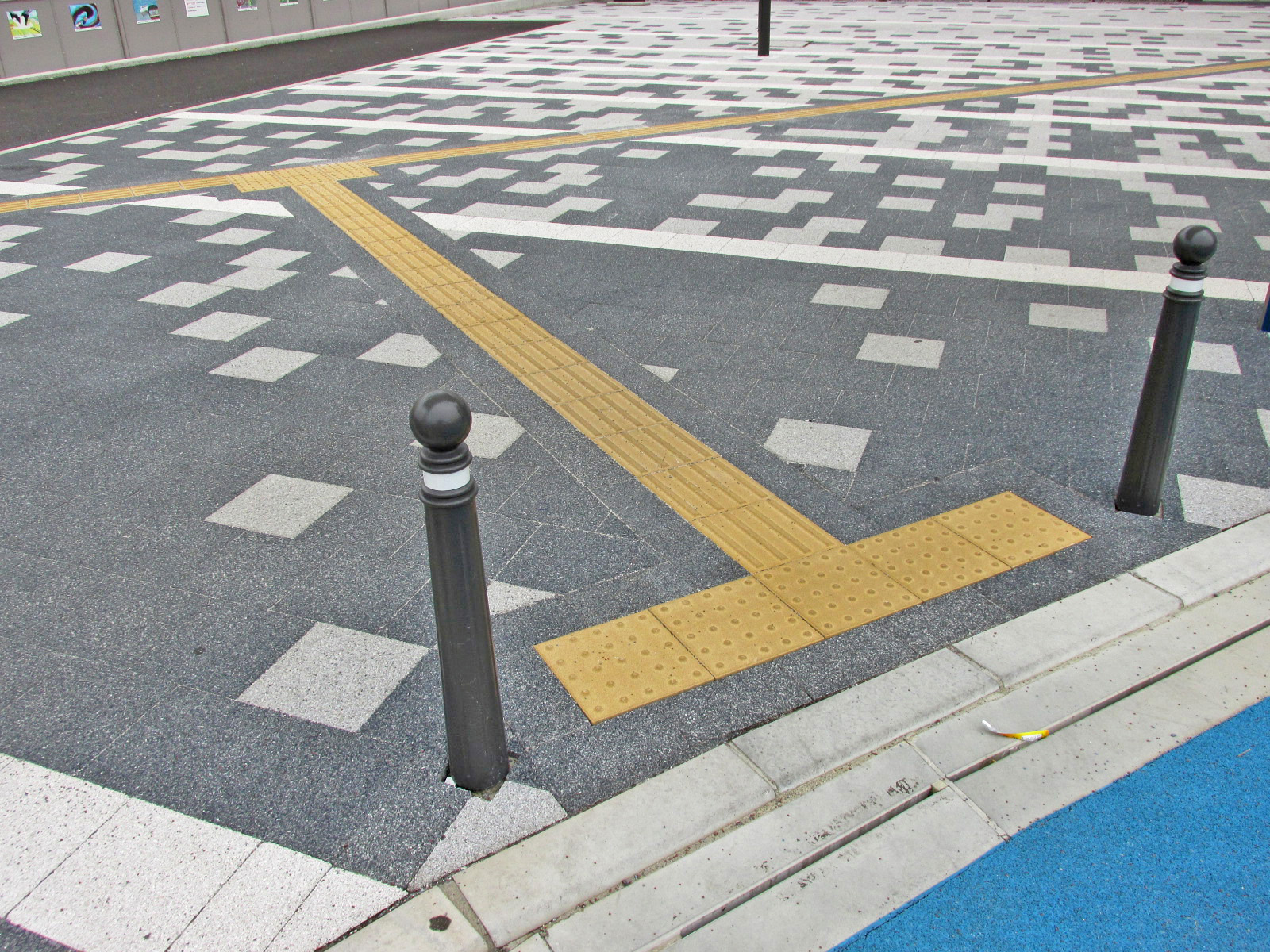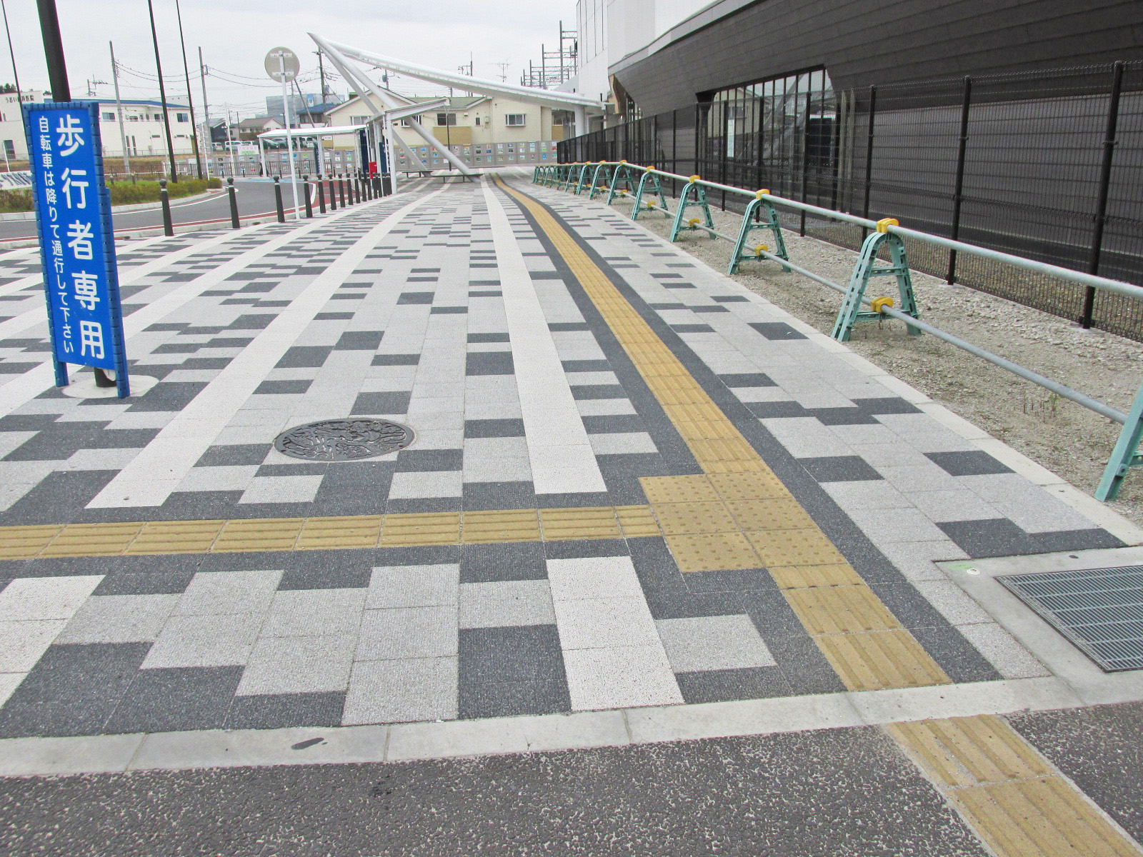 歩道から出入口までに視覚障害者誘導用ブロックがある