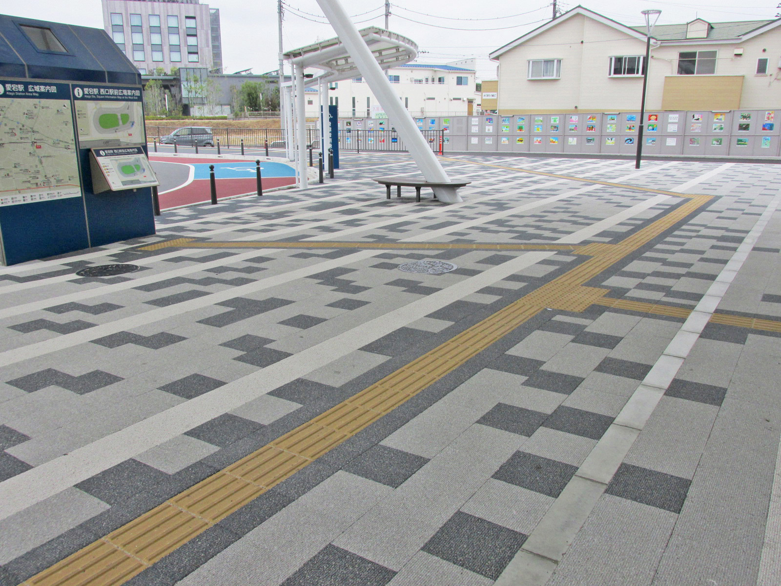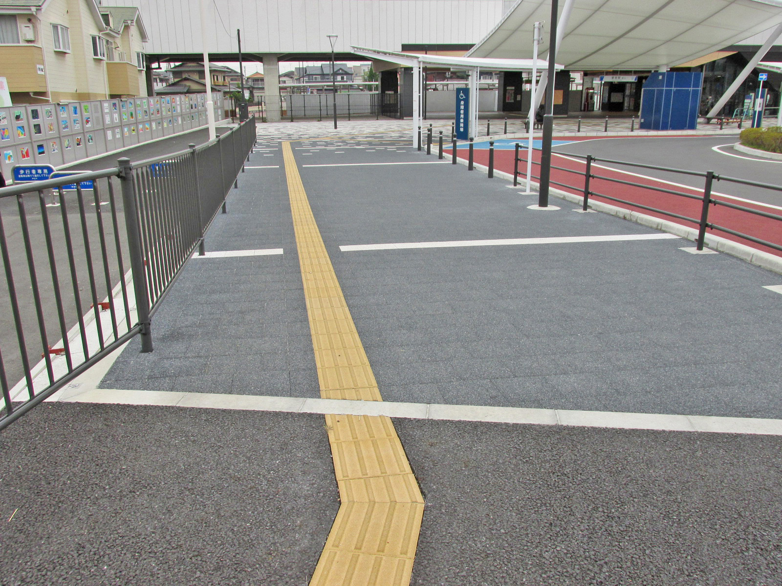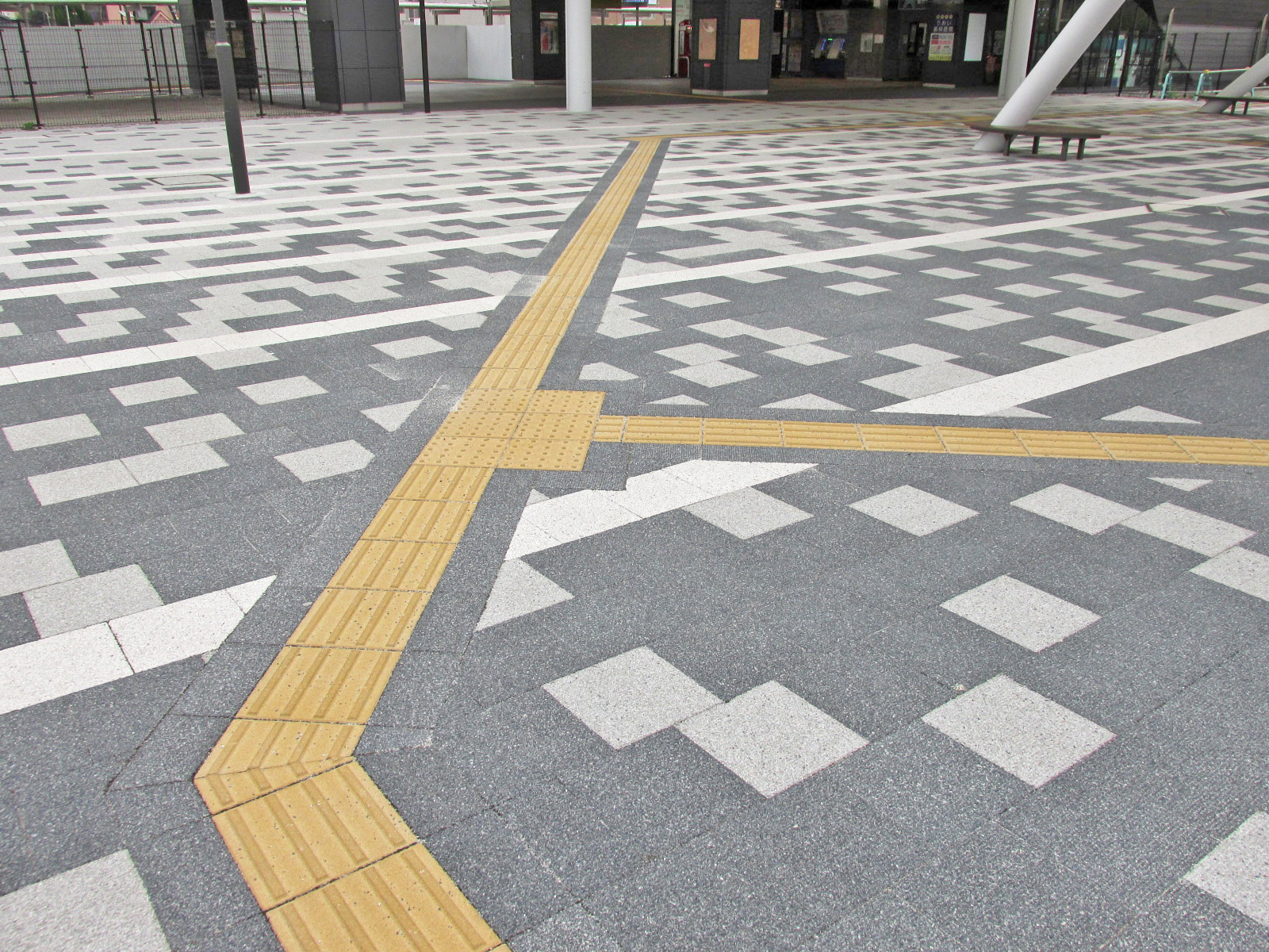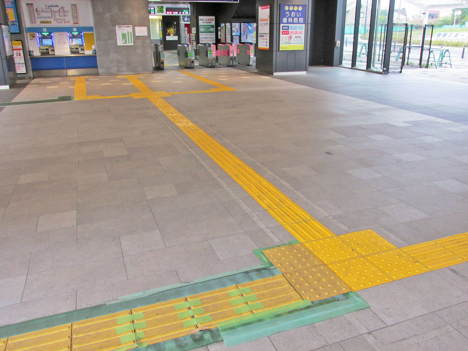 歩道から出入口までに視覚障害者誘導用ブロックがある