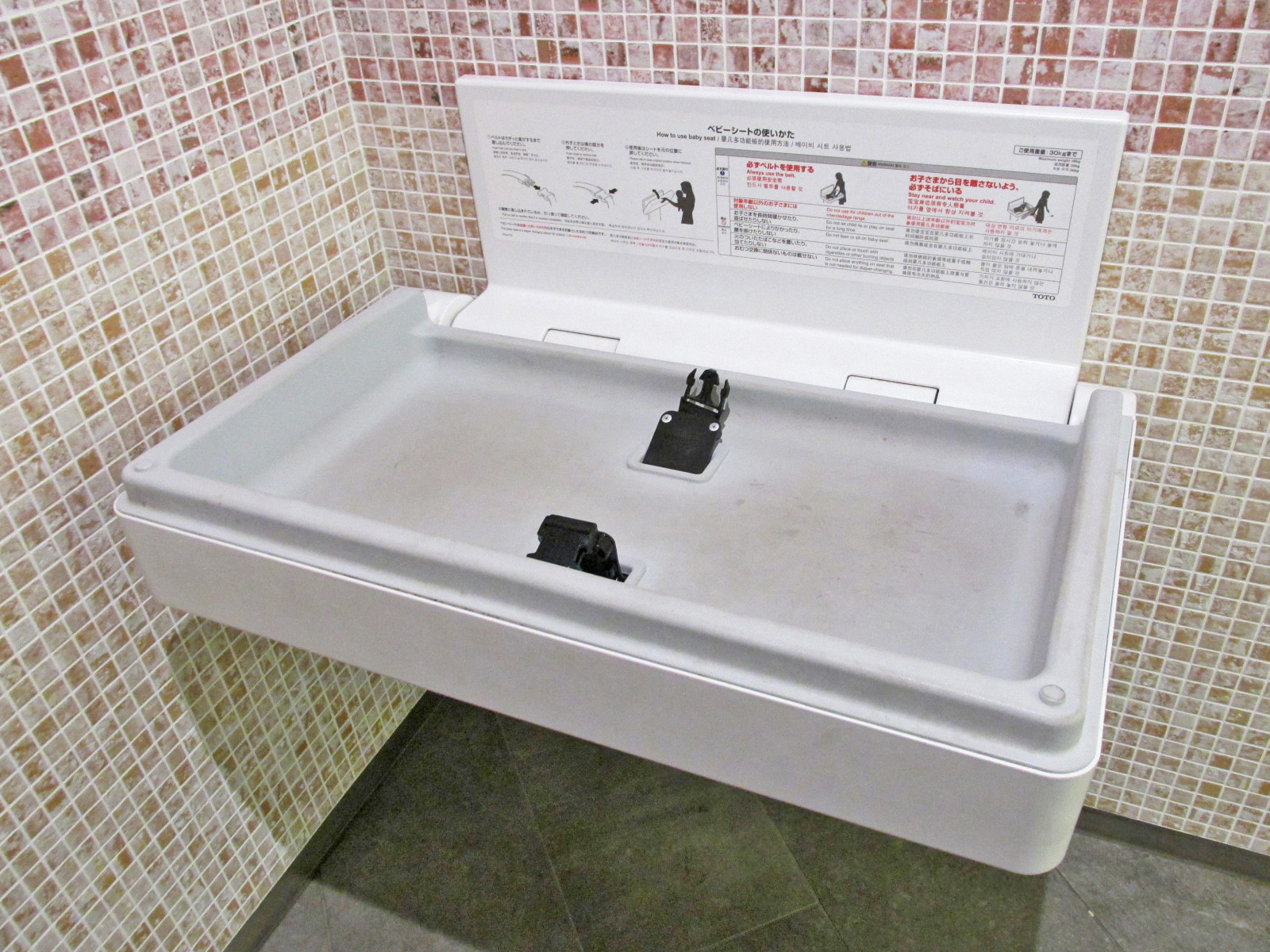 - おむつ交換室は男性用・女性用多目的トイレのベビーシートで対応