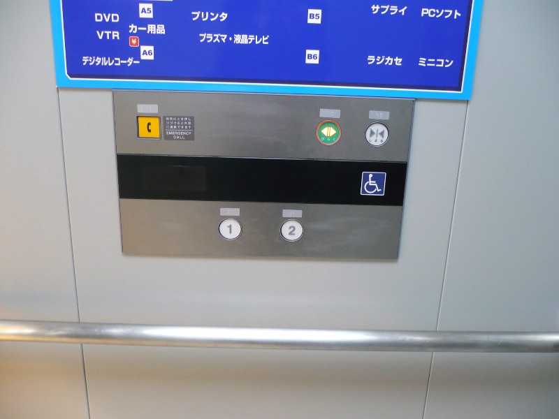 障害者対応エレベーターに点字表示ボタンがある