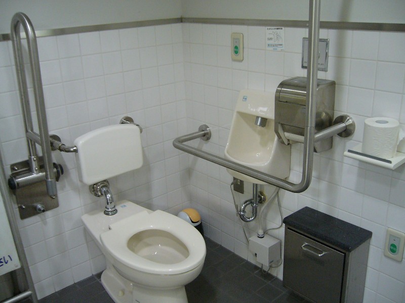 洋式便器(左手すり付き)があるバリアフリートイレ