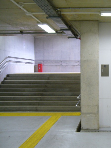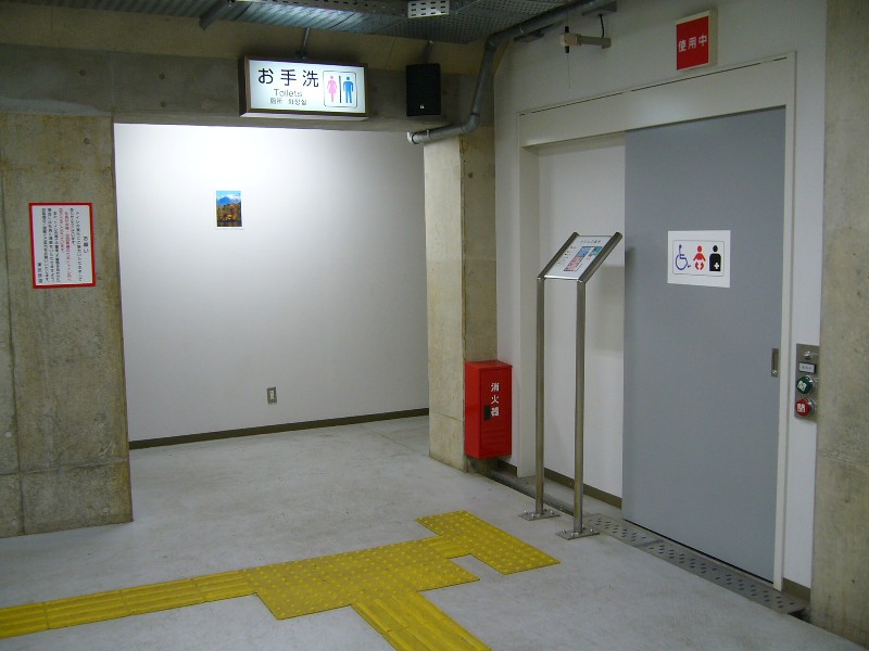 - 歩道から出入口までに視覚障害者誘導用ブロックがある