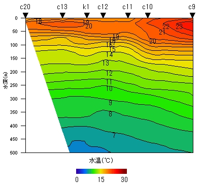 | 【流向・流速ベクトル図】 | 【水温図】 | |